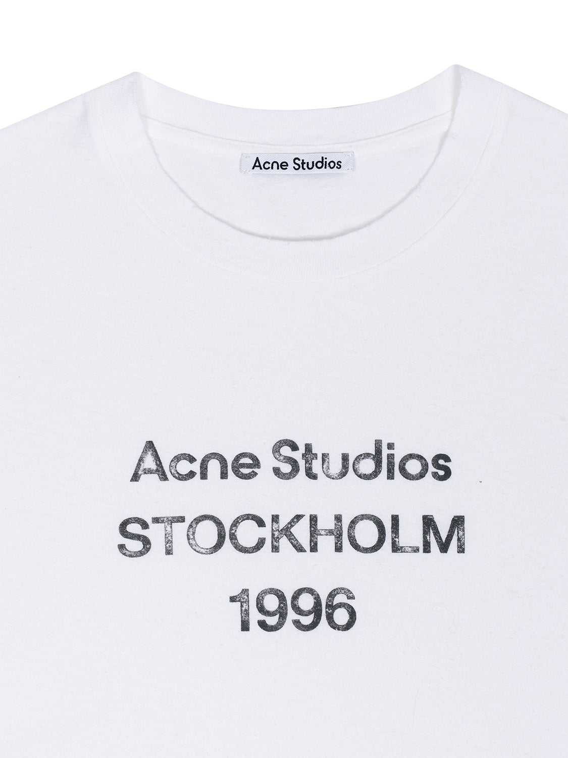 Dieses T-Shirt mit klassischem Rundhalsausschnitt zeigt auf der Vorderseite das markante Acne Studios 1996-Logo und wird durch distressed Details an Ausschnitt, Ärmeln und Saum modern akzentuiert. Gefertigt aus einer hochwertigen Mischung aus biologisch angebauter Baumwolle und Hanf, bietet es ein natürliches, angenehm luftiges Tragegefühl. Mit seinem regulären Schnitt und der hüftlangen Passform lässt sich das Modell vielfältig stylen und eignet sich ideal als lässiges Everyday-Piece mit zeitgemäßem Charakter.