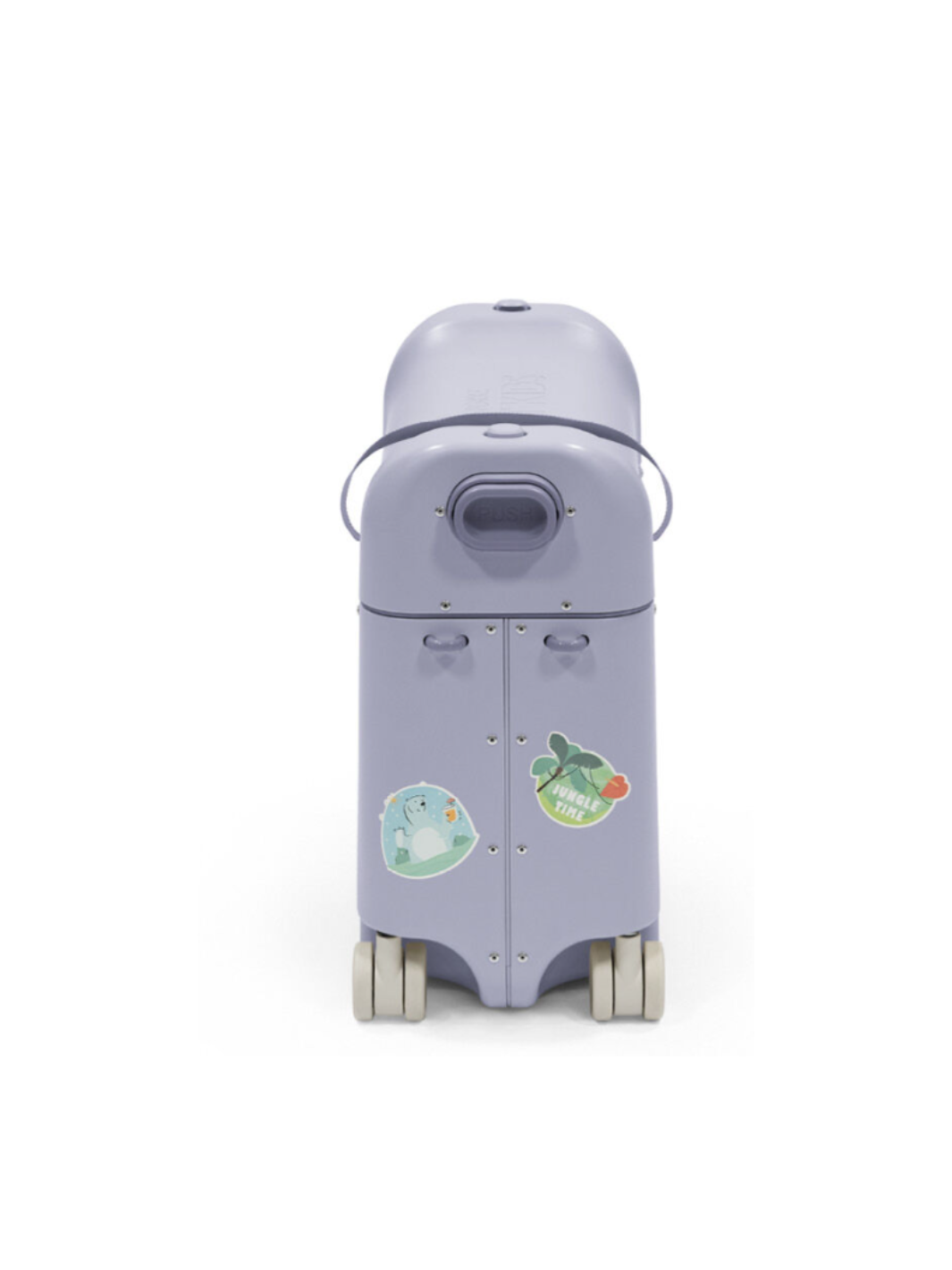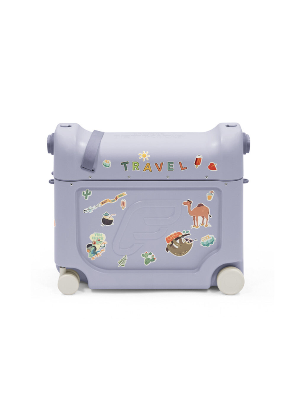 Hinter der JetKids BedBox™ verbirgt sich ein hochwertiger Aufsitzkoffer. Dieser Koffer ist von Fluggesellschaften zugelassener und verwandelt jeden Sitzplatz in ein Bett. Kinder im Alter von 2 bis 7 Jahren können auf dem Koffer sitzend fahren, gezogen werden oder selbst den Koffer ziehen. Der verstellbare Gurt ermöglicht es den Eltern, den Koffer über der Schulter zu tragen. Die Aufkleber zur Personalisierung sind selbstverständlich inklusive.