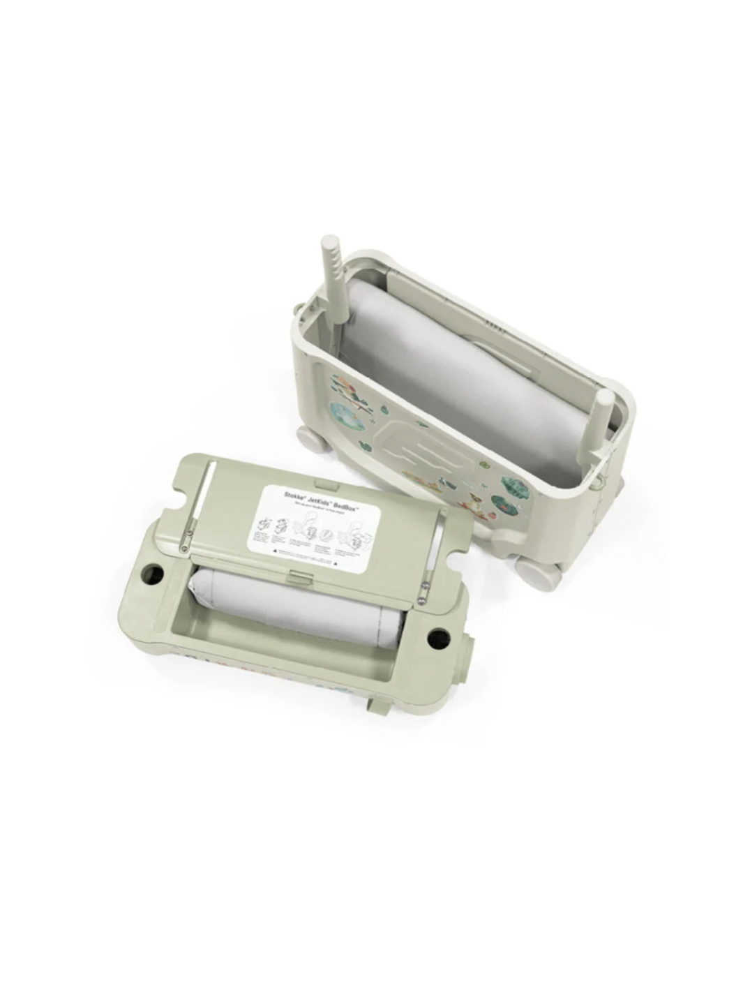 Hinter der JetKids BedBox™ verbirgt sich ein hochwertiger Aufsitzkoffer. Dieser Koffer ist von Fluggesellschaften zugelassener und verwandelt jeden Sitzplatz in ein Bett. Kinder im Alter von 2 bis 7 Jahren können auf dem Koffer sitzend fahren, gezogen werden oder selbst den Koffer ziehen. Der verstellbare Gurt ermöglicht es den Eltern, den Koffer über der Schulter zu tragen. Die Aufkleber zur Personalisierung sind selbstverständlich inklusive.