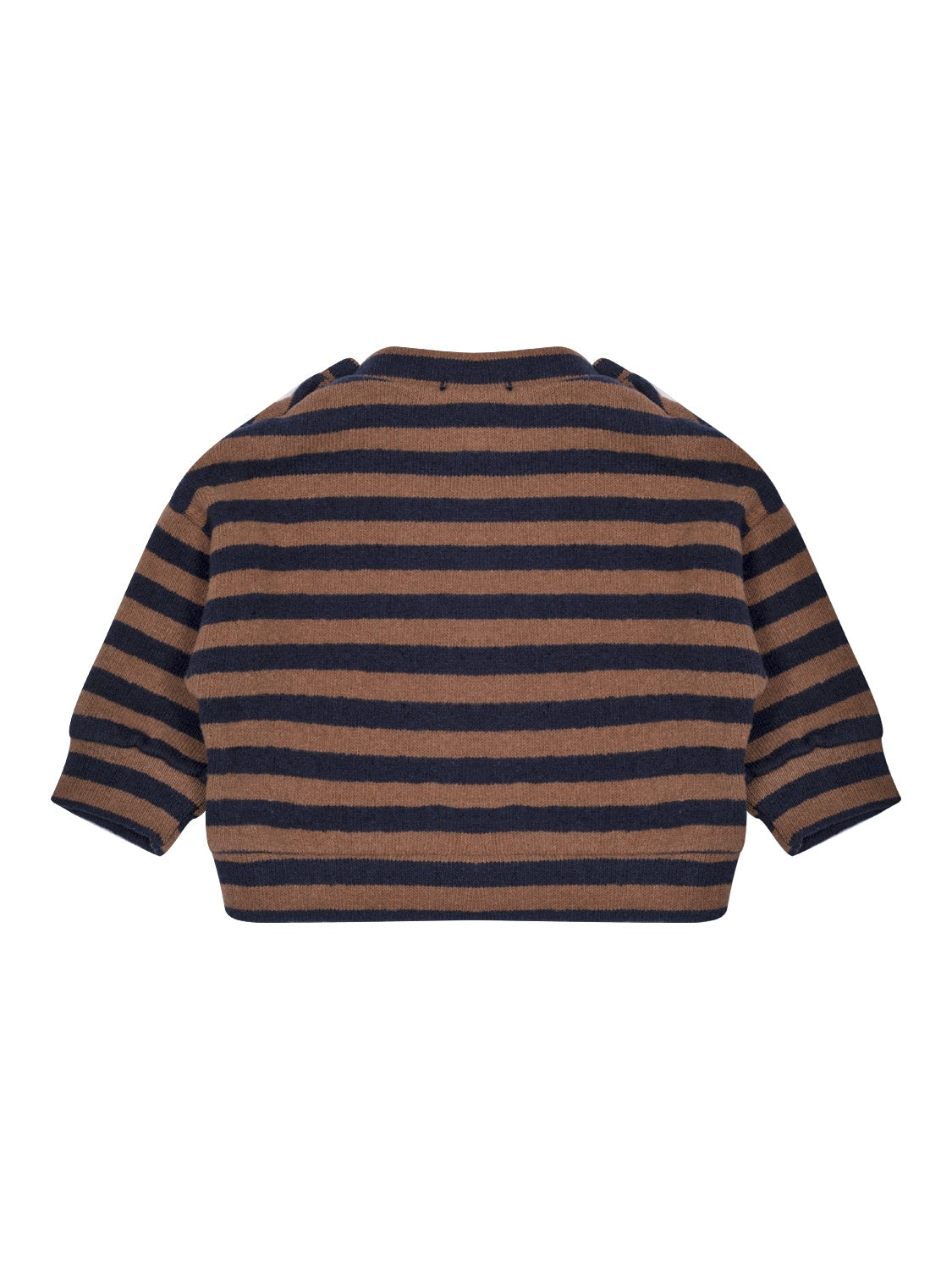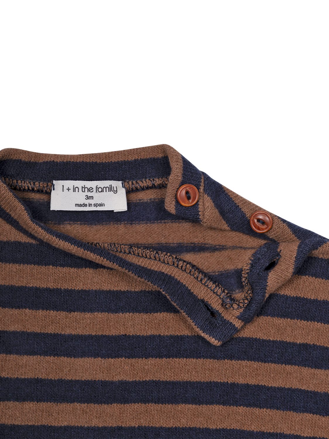 Der süße Pullover Dirk in Kastanienbraun von 1 + in the Family wird aus einem hochwertigen Baumwollgemisch gefertigt und sorgt für ein weiches und warmes Tragegefühl. Mit seinem gestreiften Design liegt der Pullover voll im Trend und kreiert ein vielseitiges Basic-Kleidungsstück, das in keiner Jungen-Garderobe fehlen sollte. Dank der praktischen Knöpfe an den Schultern gelingt das An- und Ausziehen kinderleicht, während elastische Abschlüsse für die perfekte Passform sorgen. Das charakteristische Logo-Patch am Saum rundet den Look harmonisch ab.