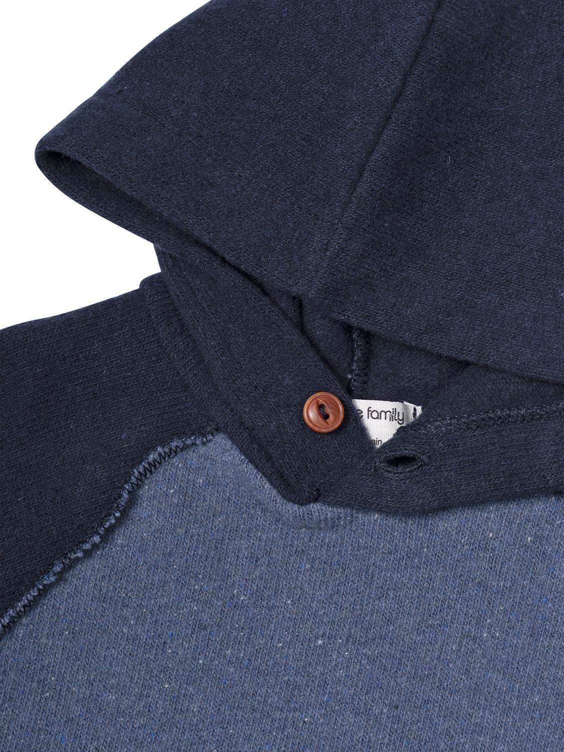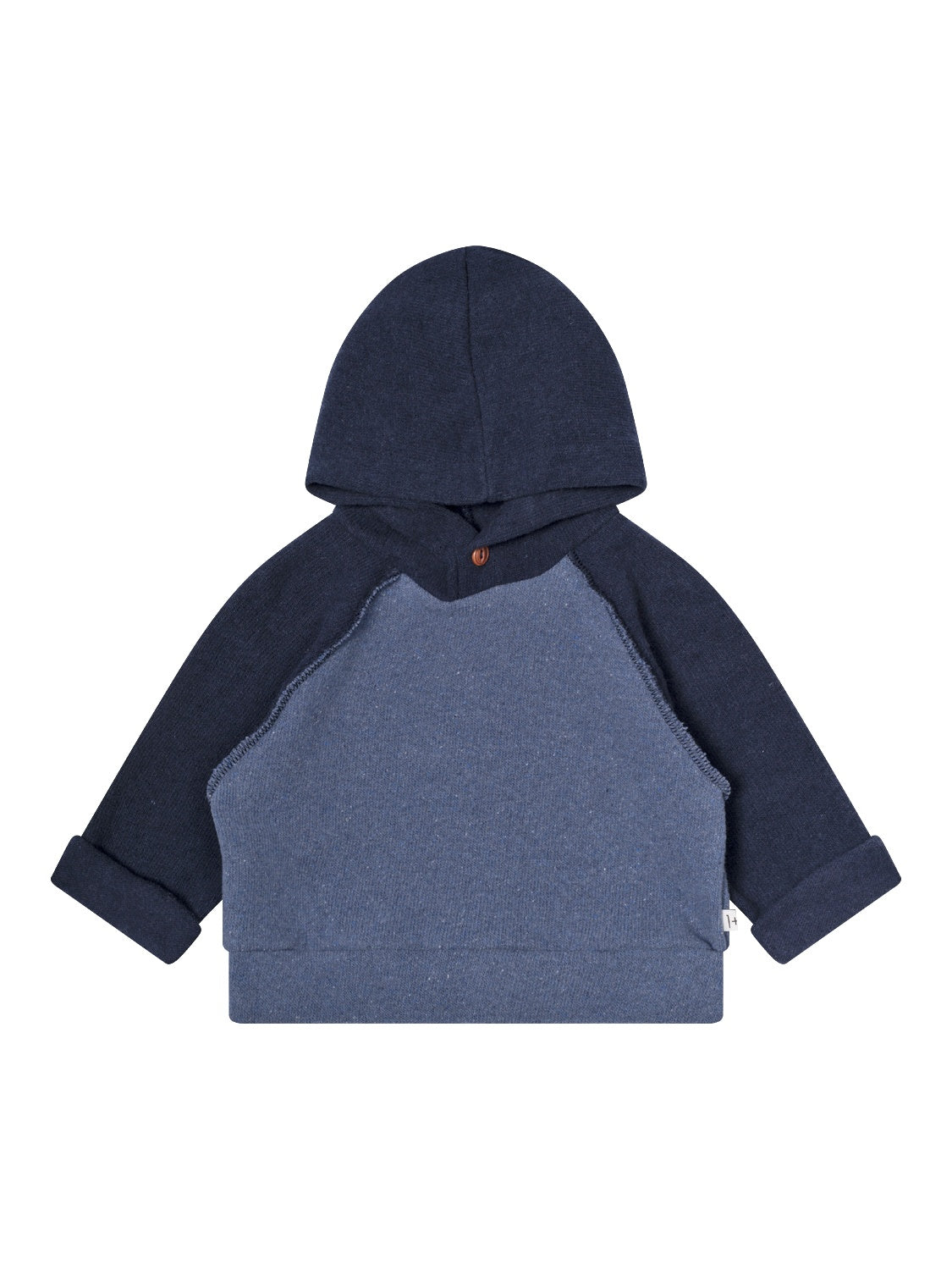 Der süße Hoodie Hakon in Denimblau von 1 + in the Family wird aus einem hochwertigen Baumwollgemisch gefertigt und sorgt für ein weiches und warmes Tragegefühl. Mit seinem coolen Colourblock Design liegt der Pullover voll im Trend und kreiert ein vielseitiges Basic-Kleidungsstück, das in keiner Kindergarderobe fehlen sollte. Neben farblich abgesetzten Raglanärmeln verfügt der Pullover über eine Kapuze mit Knopfverschluss, lange Ärmel mit Umschlag sowie eine normale Passform.
