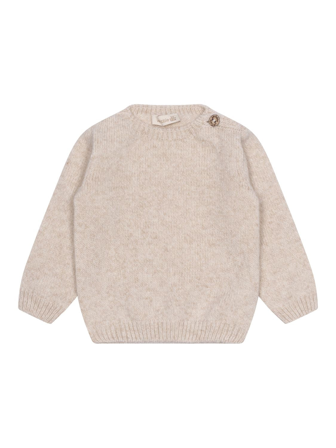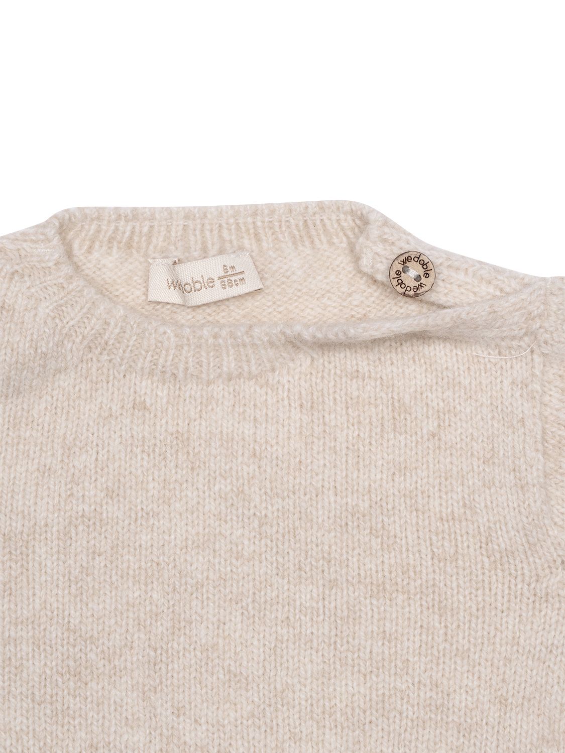 Dieser beige melierte Kuschelpullover von Wedoble präsentiert sich als Basic-Essential im schlichten Design und überzeugt mit höchstem Tragekomfort dank der Herstellung aus weicher, besonders feiner Merinowolle. Der glatt gestrickte Pullover verfügt über einen gerippten Rundhalsausschnitt mit Logo-Kokosnussknopf an der Schulter, eine normale Passform, lange Ärmeln mit Rippstrick-Bündchen sowie einen Rippstrick-Saum.