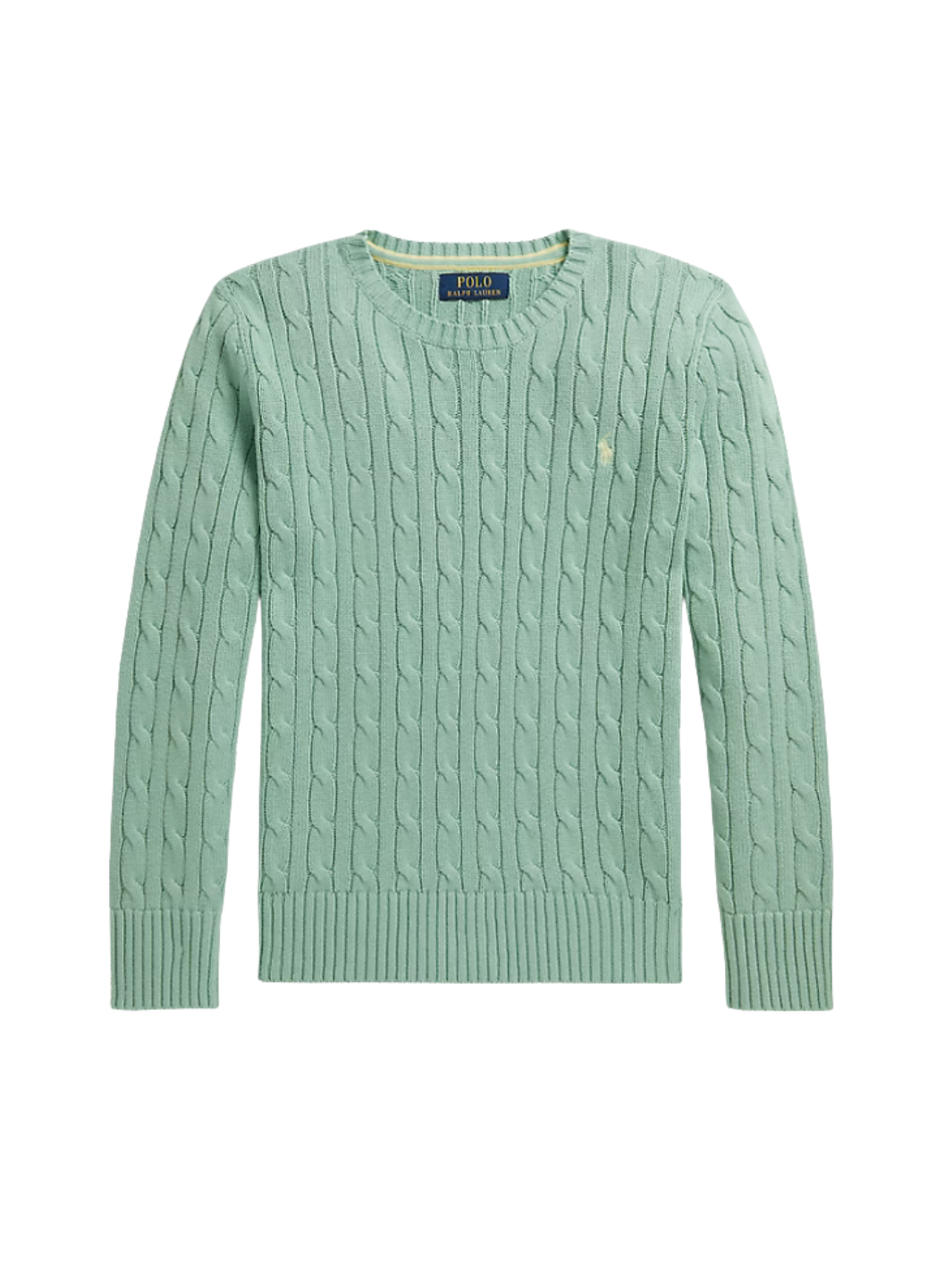 Dieser legendären Pullover mit Zopfmuster wird aus atmungsaktivem gekämmtem Baumwollgarn gefertigt und für zusätzliche Weichheit vorgewaschen. Der klassische Rundhalspulli mit Zopfmuster ist ein unverzichtbarer Klassiker. Das gestickte Pony auf der Brust, lange Ärmel mit gerippten Bündchen runden das Design ab.