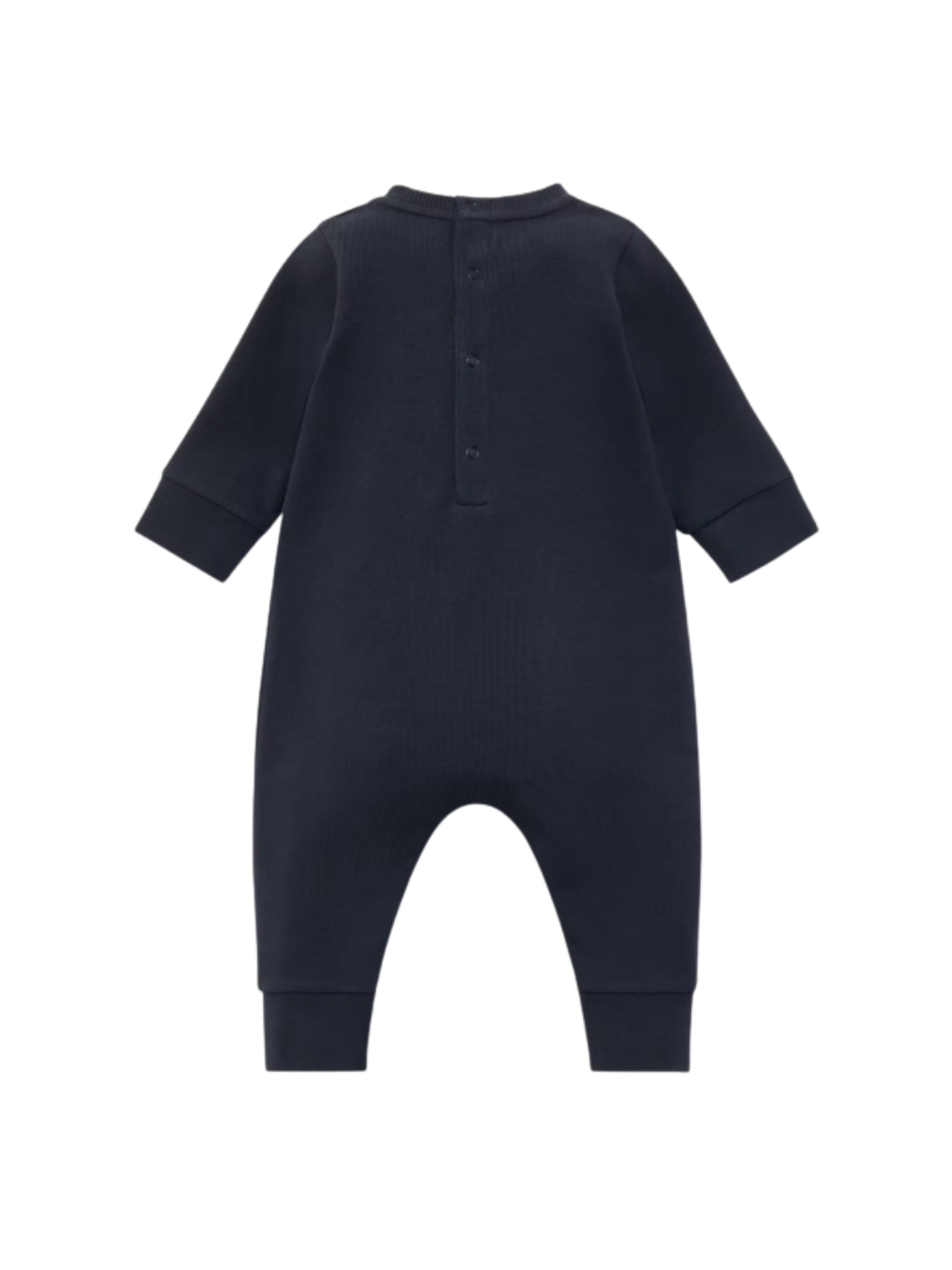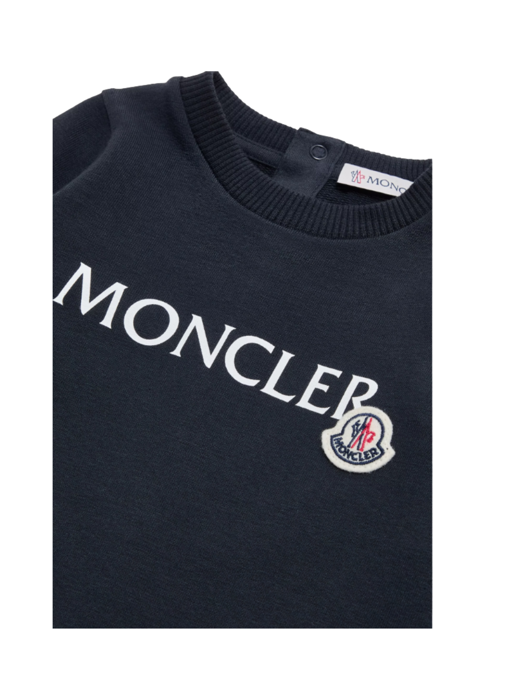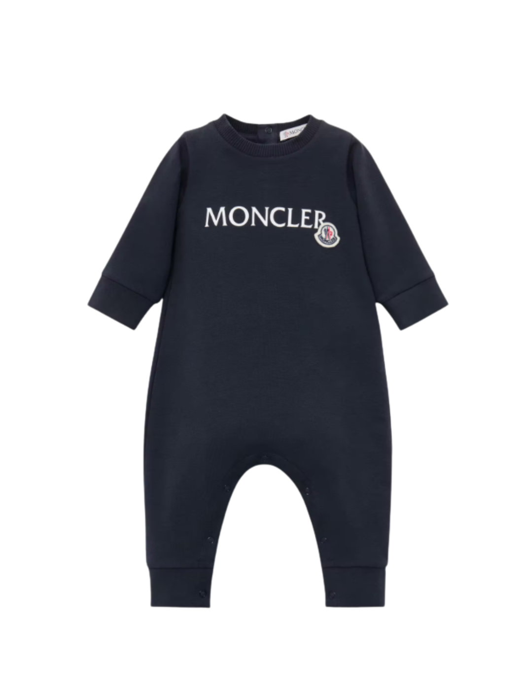 Dieser Babystrampler von Moncler Enfant ist aus elastischem Baumwollfleece gefertigt und mit einem Logo-Schriftzug verziert. Ein Druckknopfverschluss erleichtert das Anziehen. Rundhalsausschnitt, lange Ärmel sowie Druckknopfverschluss hinten und am Innenbein vervollständigen diese Kreation für die ganz Kleinen.
