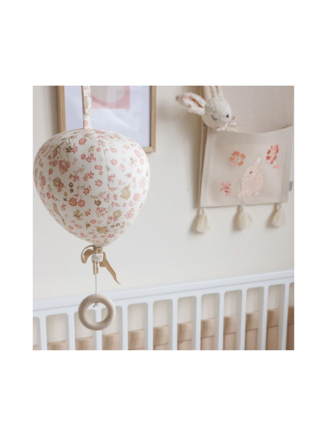 Die niedliche Spieluhr für das Kinderzimmer sorgt für Abwechslung. Das ballonförmige Mobile, ist aus gestepptem Stoff mit einer süßen Schleife am unteren Rand. Mit einem einfachen Zug am Holzring startet die Melodie Summertime von George Gerwien. Die Spieluhr ist handgemacht.