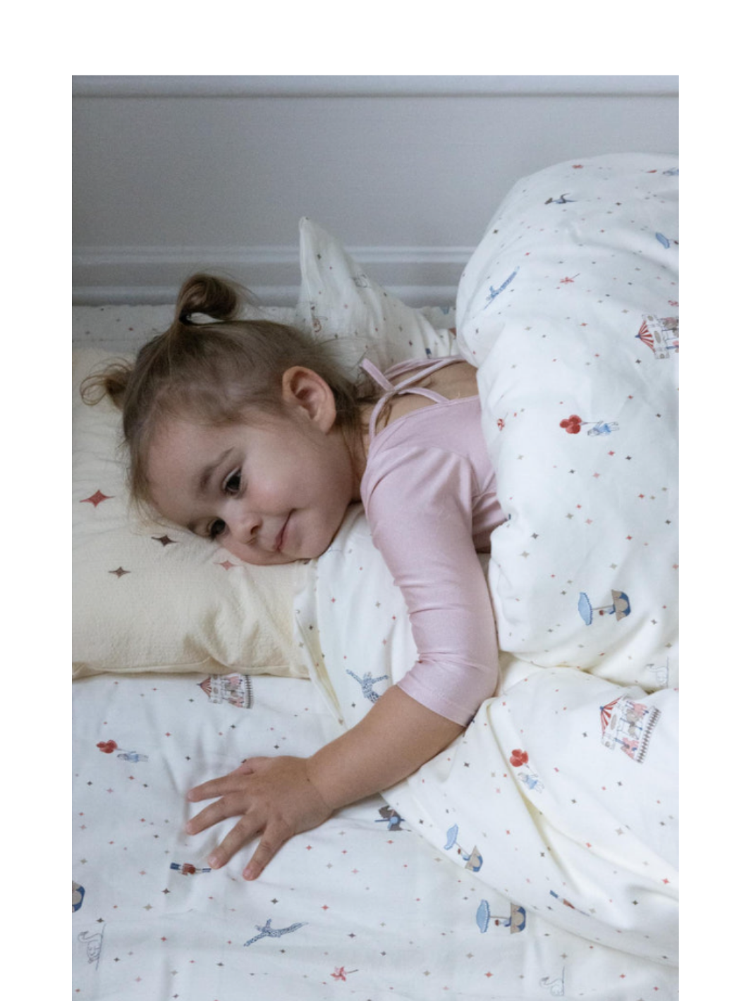 Die Juniorbettwäsche ist aus weichem Bio-Baumwollsatin mit GOTS-Zertifizierung hergestellt und sorgt für einen angenehmen Schlaf. Das Set besteht aus einem Bettbezug und einem Kissenbezug sowie einer passenden Stofftasche. Beide Teile sind mit einem YKK-Reißverschluss verschließbar.