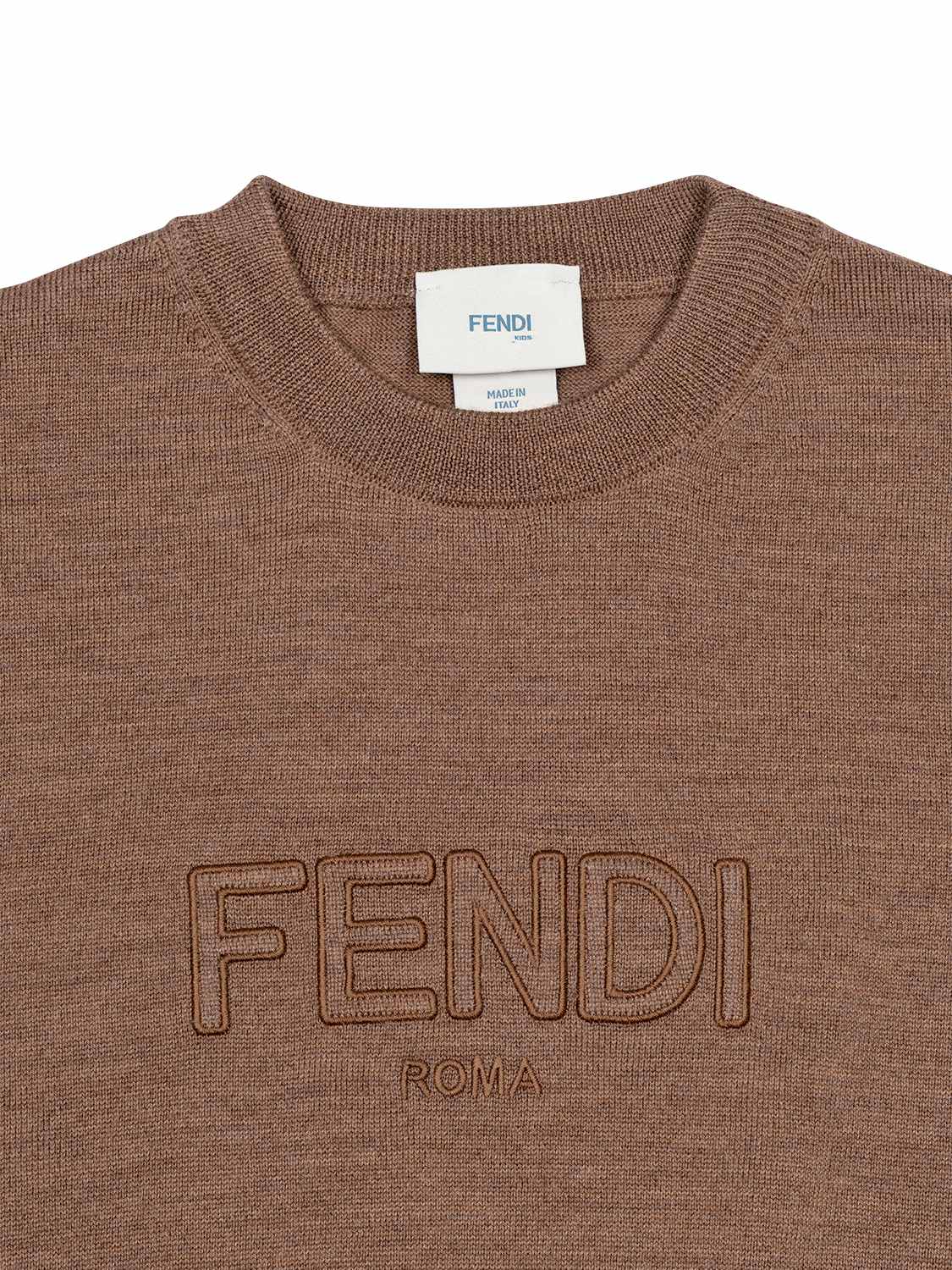 Dieser edle Feinstrickpullover in Camel von Fendi präsentiert sich im stilvollen Glattstrickdesign und wird aus weicher Wolle gefertigt, für ein traumhaftes Tragegefühl. Das locker geschnittene Modell lässt sich perfekt über einem Hemd oder T-Shirt tragen und bietet Wärme sowie Vielseitigkeit für den Alltag. Neben einem gerippten Rundhalsausschnitt verfügt der Pullover über lange Ärmel mit gerippten Bündchen sowie einen gerippten Saum. Auf der Brust werden von der ikonischen tonalen Logo-Stickerei labeltypische Akzente gesetzt.