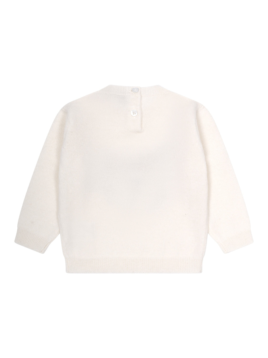 Der herrlich kuschelige und wärmende Pulli aus 2-fädigem feinsten Kaschmir ist mit langen Ärmeln und Rundhalsausschnitt ausgestattet. Halsausschnitt, Ärmel und Saum schließen mit gerippten elastischen Bündchen ab. Ein praktischer Knopfverschluss im Nackenbereich (bis Größe 18 Monate) erleichtert das An- und Ausziehen.
