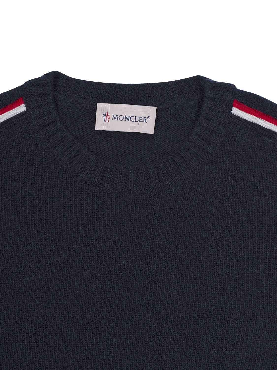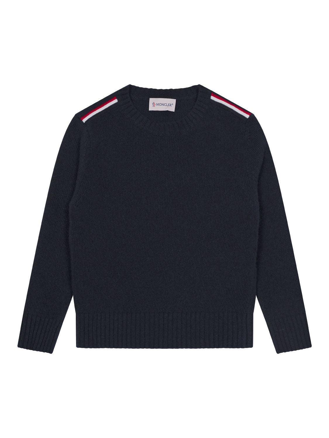 Dieser mittelschwere Strickpullover in Dunkelblau für Jungen von Moncler Enfant ist ein ganzjähriger Begleiter an kühleren Tagen. Das Modell besteht aus kardierter Wolle und ist mit einem dreifarbigen Detail entlang der Schultern verziert. Neben einem gerippten Rundhalsausschnitt verfügt der Pullover über lange Ärmel mit gerippten Bündchen, eine normale Passform sowie einen gerippten Saum. Das glatt rechts gestrickte Design unterstreicht den klassischen Stil, während das ikonische Filz-Logo-Patch am Ärmel dem Look ein labeltypisches Finish verleiht.