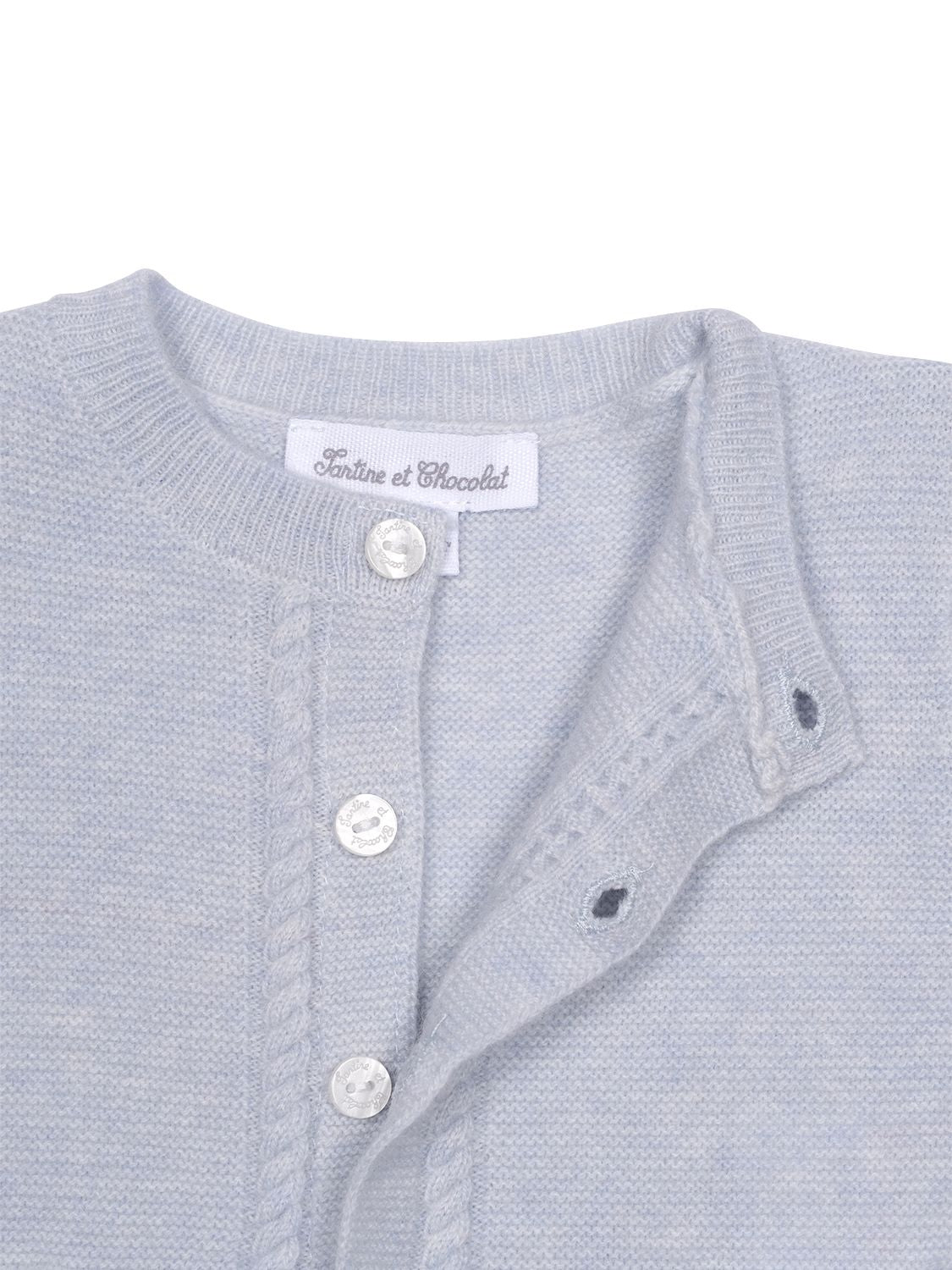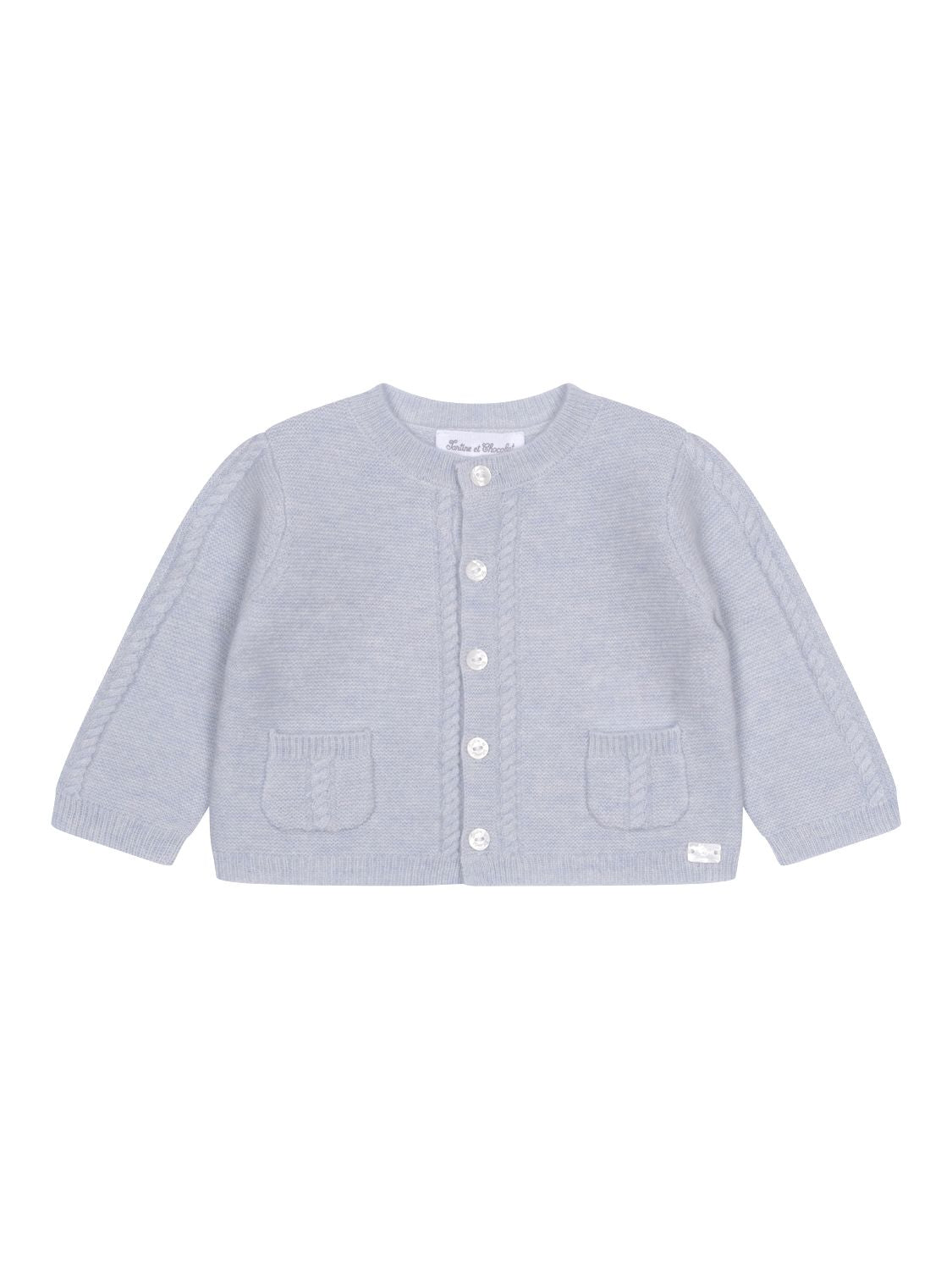 Diese süße Strickjacke in Blau von Tartine et Chocolat besteht aus feiner Wolle und Kaschmir und besticht mit einem zeitlos eleganten Design sowie zarten Zopfstrick-Details. Das Modell bietet die perfekte Kombination aus Stil und Komfort. Zwei kleine Vordertaschen verleihen dem Look eine verspielte Note. Neben einem Rippstrick-Rundhalsausschnitt verfügt der Cardigan über lange Ärmel, einen Verschluss mit Perlmuttknöpfen auf der Vorderseite, gerippte Abschlüsse sowie eine normale Passform.