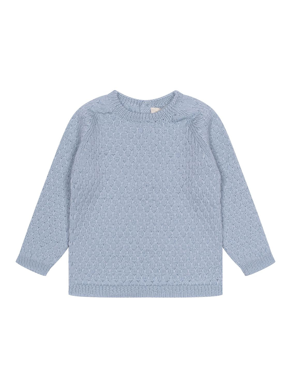 Dieser bezaubernde Strickpullover in Blau von Wedoble besticht mit einem raffinierten Strick-Design und wird dank seiner traumhaft weichen Materialqualität aus feinster Merinowolle zum neuen Lieblingsteil in der Jungen-Garderobe. Neben einem gerippten Rundhalsausschnitt verfügt der Pullover über lange Ärmel mit gerippten Bündchen, eine normale Passform sowie einen Rippstrick-Saum. Im Rückenbereich erleichtert ein Verschluss aus Kokosnuss-Knöpfen das An- und Ausziehen, während die Herstellung im Wholegarment-Verfahren - nahtlos in einem Stück - Ihrem Baby maximalen Komfort bietet.