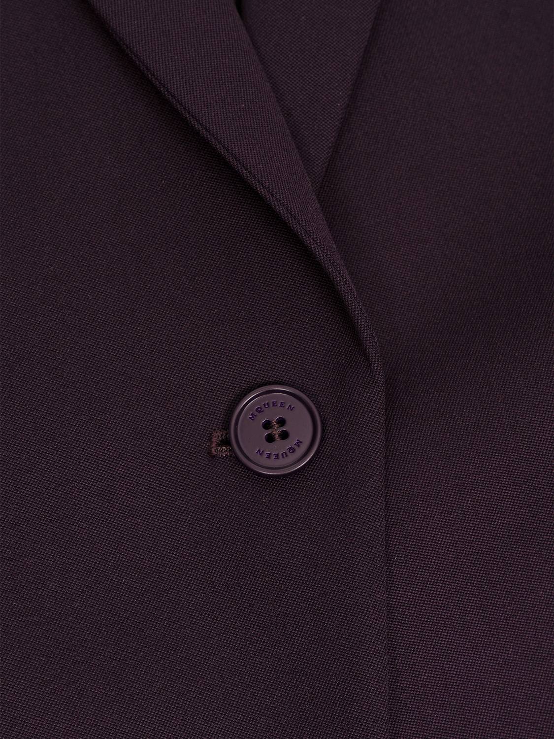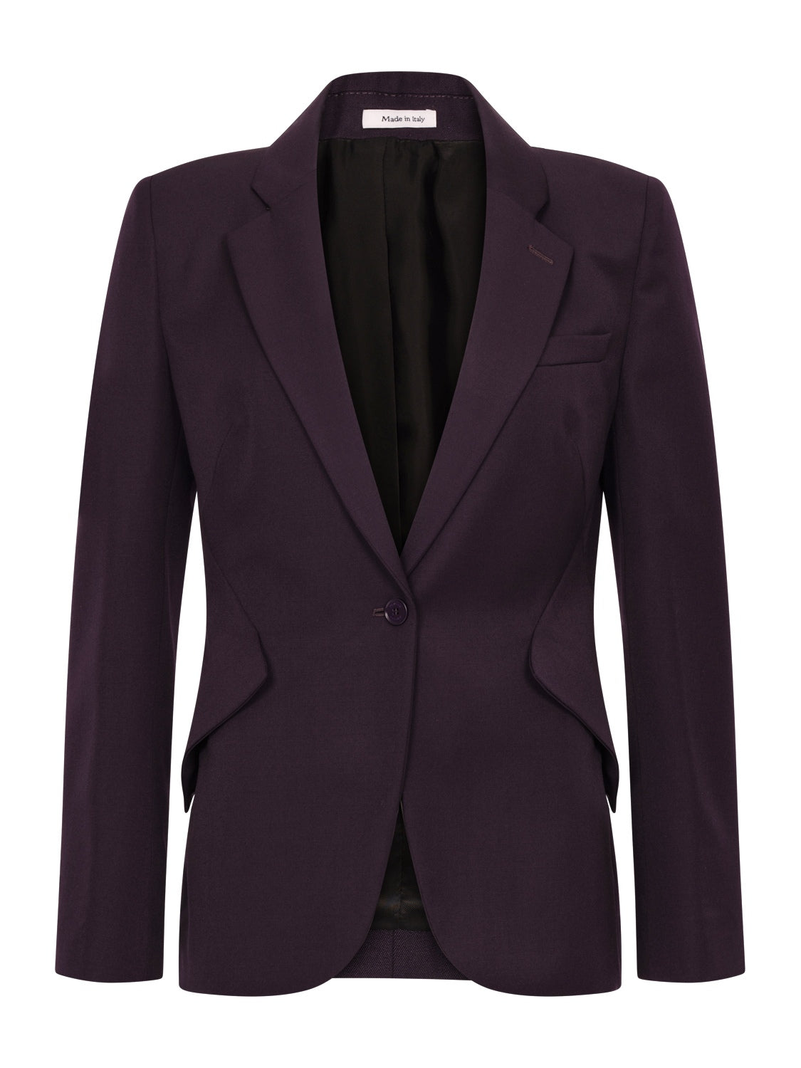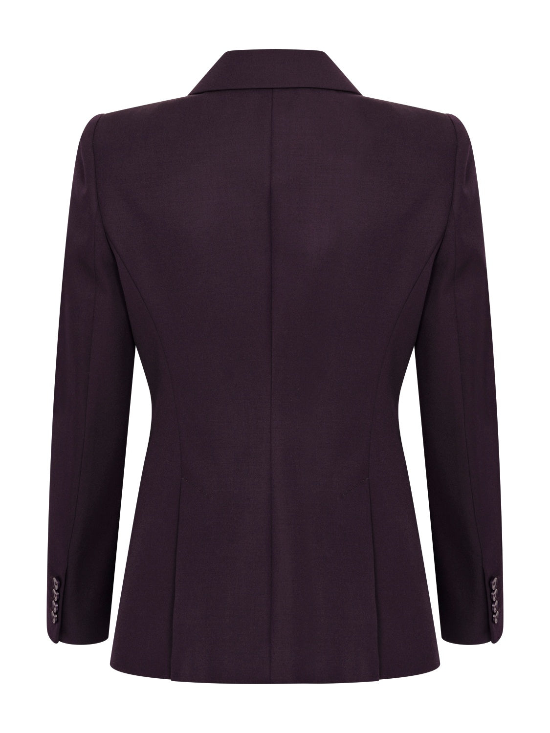Der perfekt abgestimmte Blazer zur Zigarettenhose präsentiert sich in einem eleganten Lila und ist aus reiner Wolle gefertigt. Mit seiner leicht taillierten Passform, dem klassischen Revers und präzise gesetzten Teilungsnähten unterstreicht er eine feminine, zugleich kraftvolle Silhouette. Ob als stilvolles Ensemble getragen oder solo kombiniert – dieser Blazer setzt ein klares Fashion-Statement. Die hochwertige Wollqualität sorgt für angenehmen Tragekomfort und einen fließenden Fall. Ideal für moderne Looks mit Charakter.