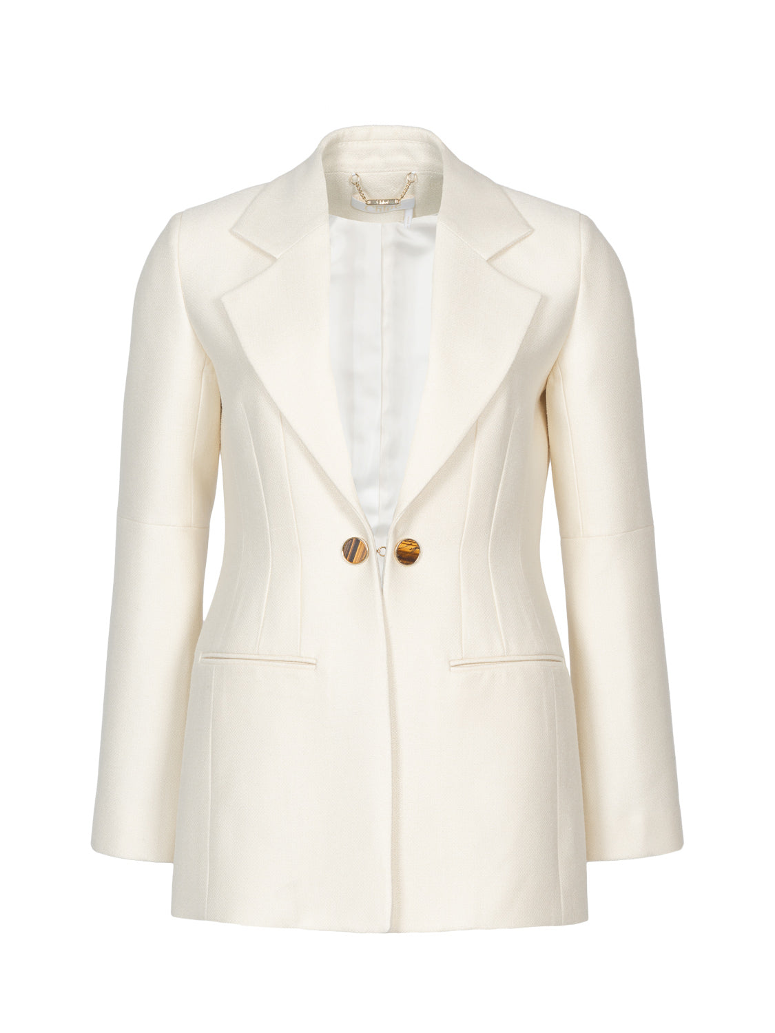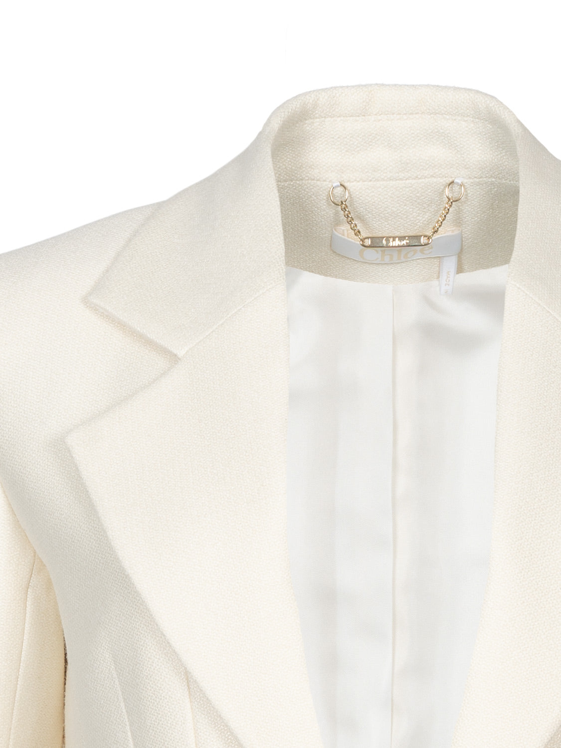 Cremeweiße Smokingjacke aus Seiden-Canvas-Wolle von Chloé.