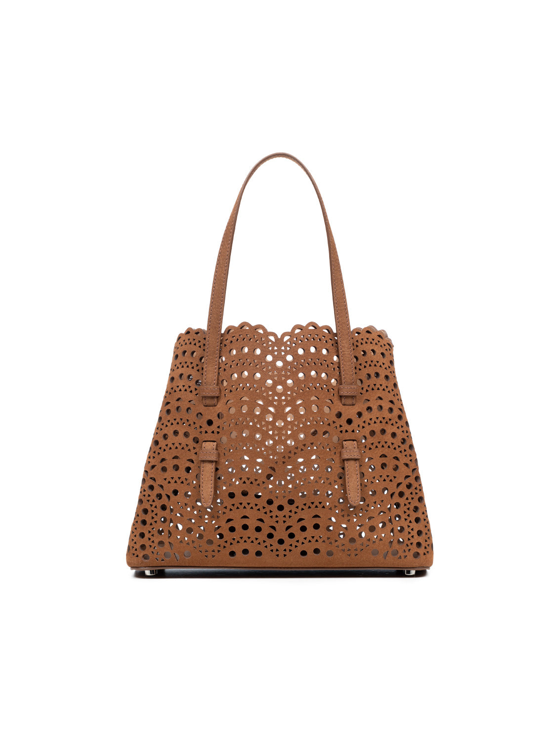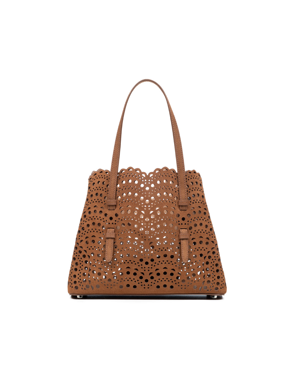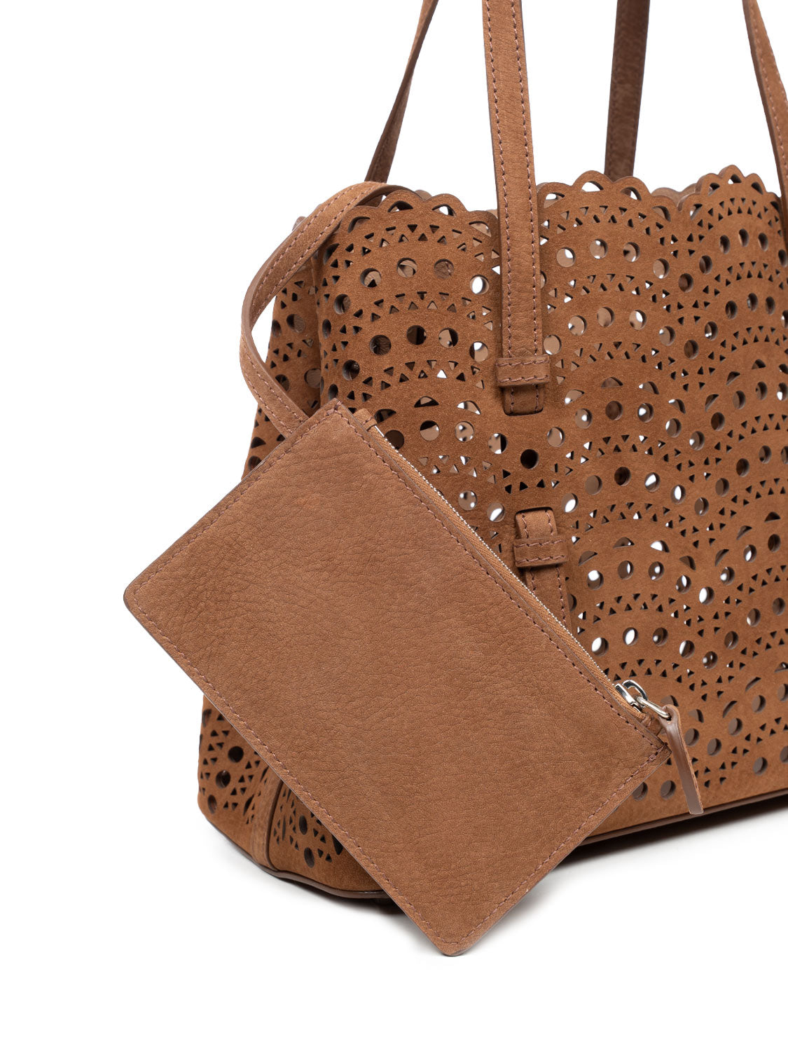 Die Medium Tote Bag von Alaïa besticht durch ihr kunstvolles Vienne-Muster, das von feiner Spitze und der filigranen Architektur der Moucharabieh inspiriert ist. Aus weichem Nubuk-Kalbsleder gefertigt, vermittelt sie ein luxuriöses, angenehmes Tragegefühl. Abnehmbare Träger und Seiten mit Druckknöpfen erlauben flexible Tragevarianten, während eine abnehmbare Lederpouch zusätzlichen Stauraum bietet. Ein elegantes und zugleich funktionales Accessoire, das Alaïas charakteristische Handwerkskunst und zeitlose Ästhetik vereint.