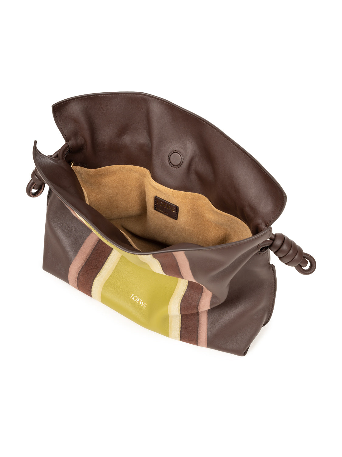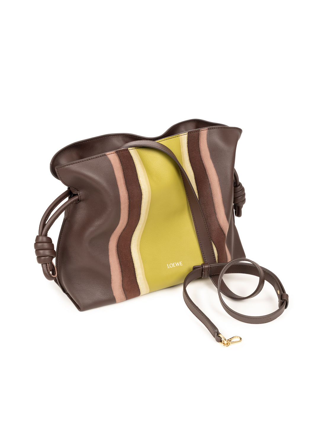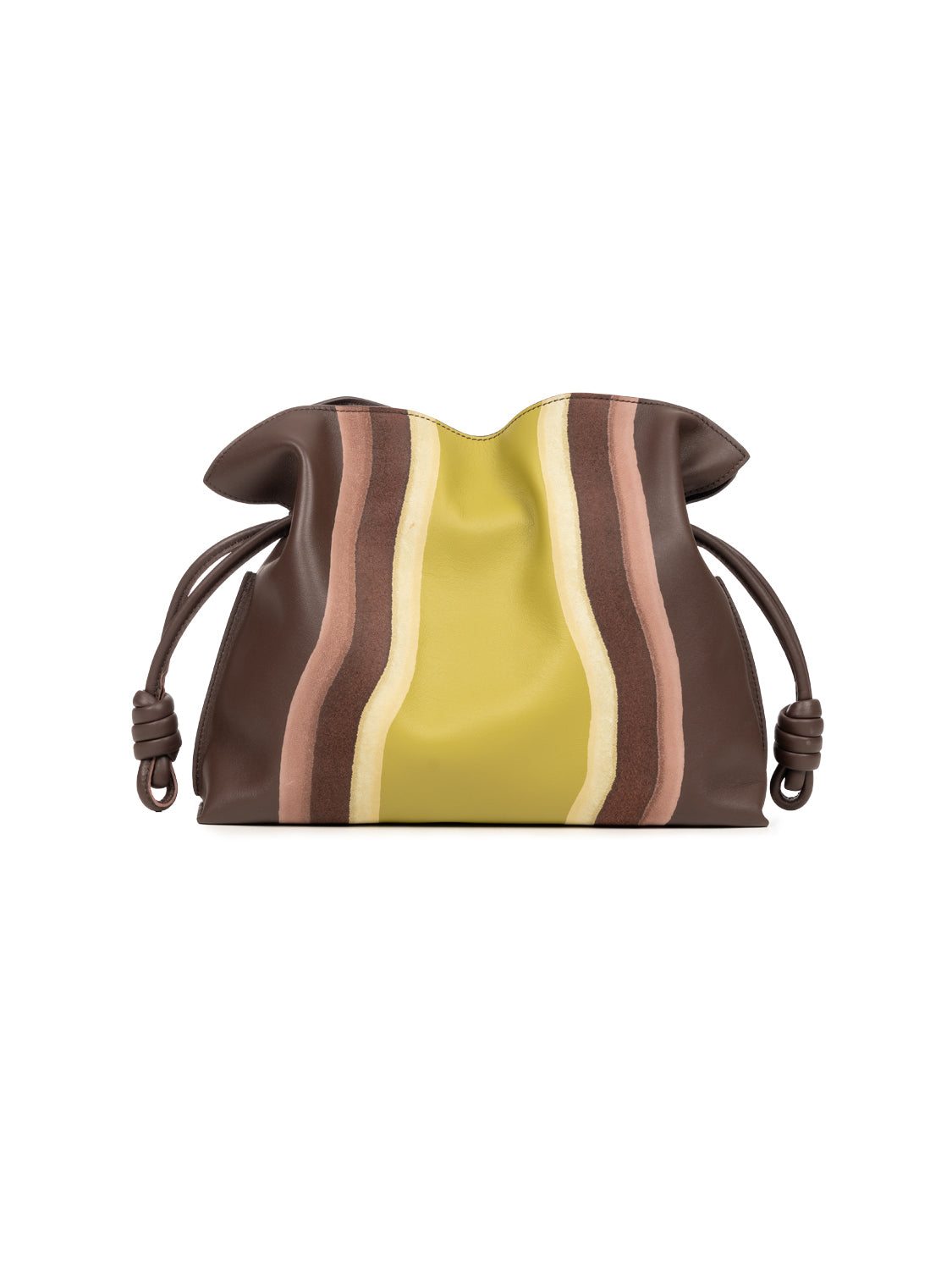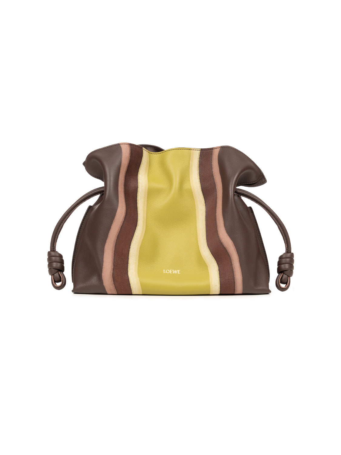 Die mittelgroße Flamenco Clutch verbindet zeitlose Eleganz mit moderner Handwerkskunst. Sie besteht aus hochwertigem Nappa-Kalbsleder und Wildleder, verarbeitet in einem mehrschichtigen, speziell komprimierten Verfahren, das eine einzigartige, weiche Textur erzeugt. Der charakteristische geraffte Verschluss mit geknoteten Kordelzügen verleiht der Tasche ihren ikonischen Look.