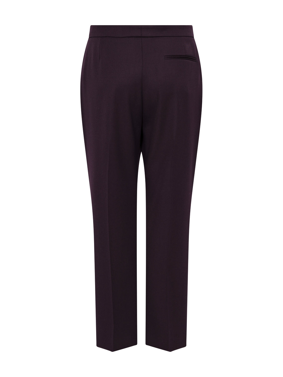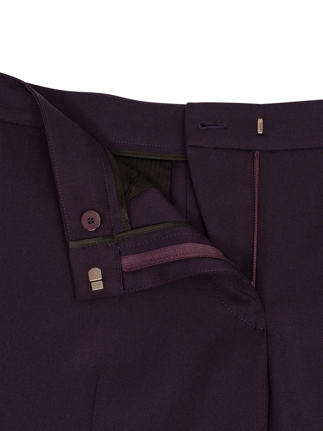 Diese schmal geschnittene Zigarettenhose aus reiner Wolle vereint zeitlose Eleganz mit modernem Farbstatement. Der sanfte Lilaton bringt frischen Schwung in klassische Looks und lässt sich sowohl im Business-Kontext als auch im Alltag stilvoll einsetzen. Der taillierte Schnitt sorgt für eine schlanke Silhouette, während die feine Wollqualität natürlichen Tragekomfort und eine edle Haptik bietet. Ein hochwertiges Key-Piece für alle, die klare Linien und besondere Farbakzente schätzen.