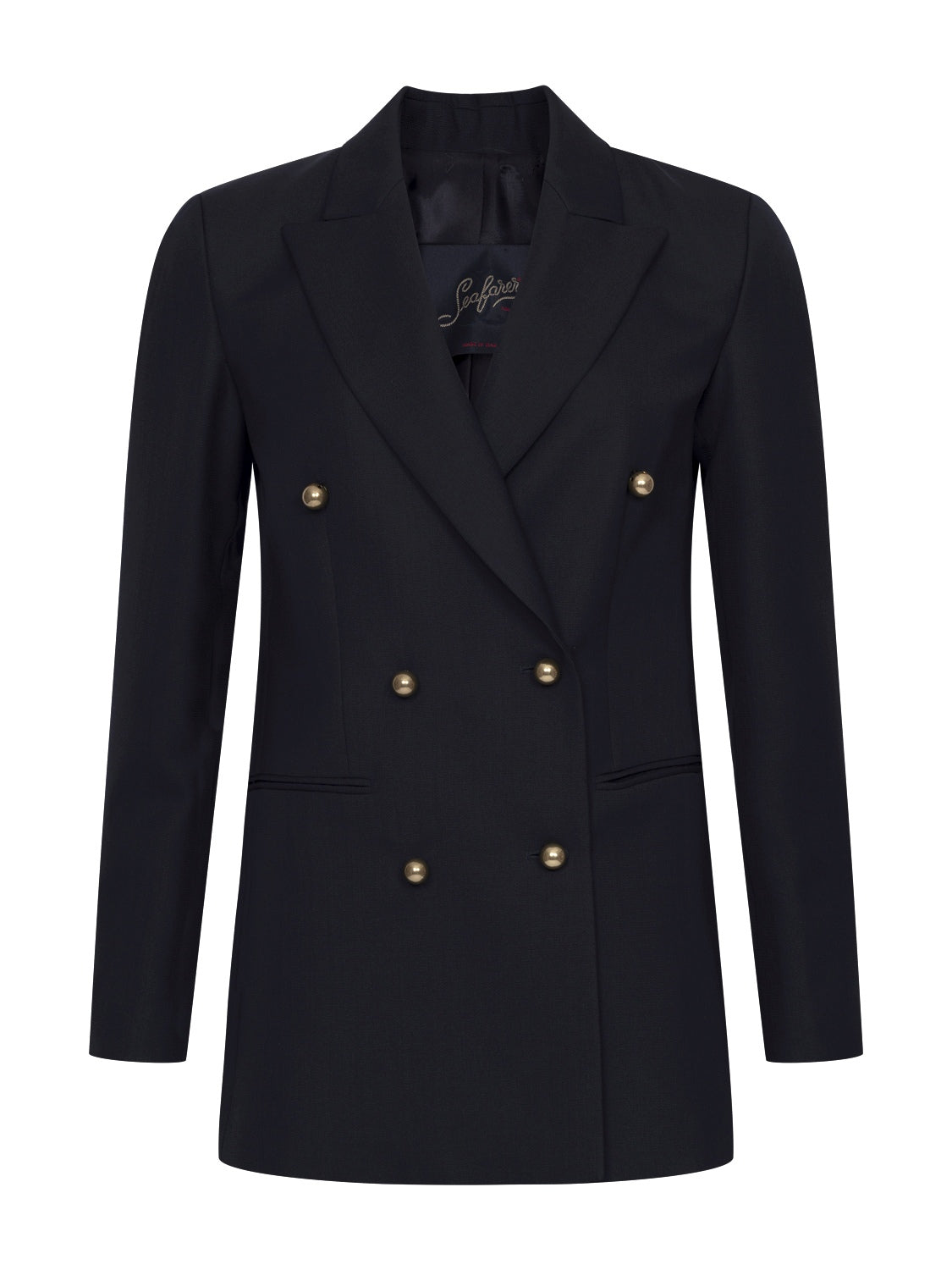 Der Betty Blazer von Seafarer ist ein zeitloser Klassiker, der Eleganz und Vielseitigkeit perfekt miteinander verbindet. Das dreiknöpfige, doppelt geknöpfte Design sorgt für eine markante, strukturierte Silhouette, während die zwei vorderen Paspeltaschen praktische Akzente setzen. Dank seines klaren Schnitts lässt sich der Blazer sowohl im Büro als auch zu formellen Anlässen tragen, verleiht aber auch casual Looks einen stilvollen, schicken Touch. Hochwertig verarbeitet und mit Liebe zum Detail gestaltet, ist der Betty Blazer ein unverzichtbares Kleidungsstück für alle, die klassische Mode mit modernem Flair schätzen.