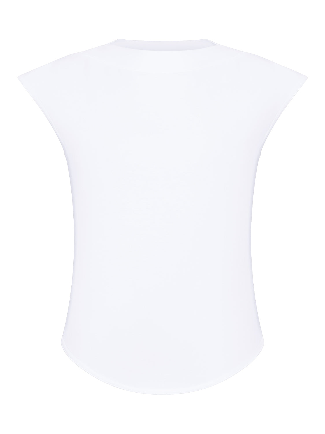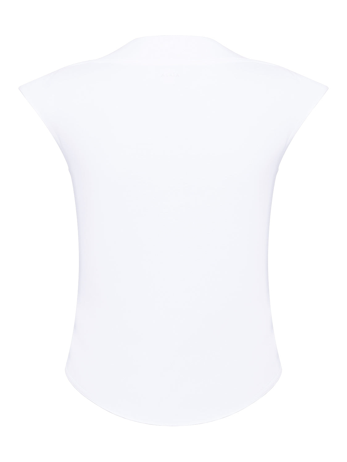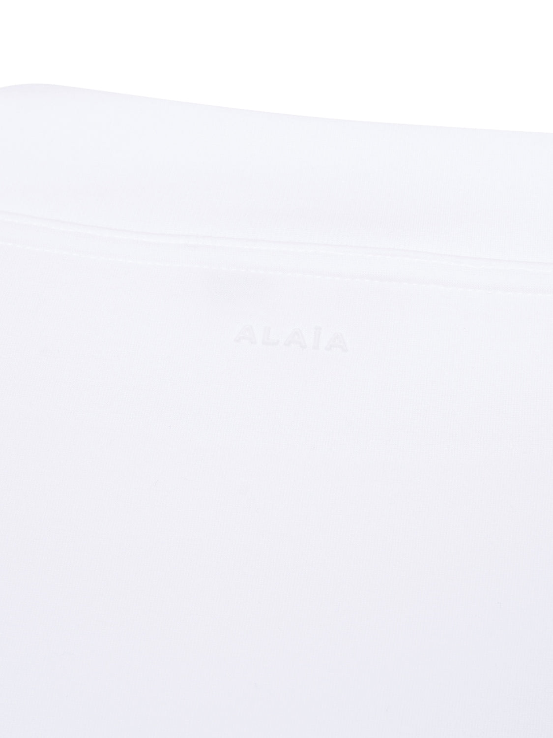 Das ärmellose Top von Alaïa besticht durch minimalistische Eleganz und betont die weibliche Silhouette auf raffinierte Weise. Breite Schultern, dezent akzentuierte Epauletten sowie ein sanft gerundeter Crew-Neck-Ausschnitt und leicht abgerundete Seiten verleihen dem Modell eine moderne, schmeichelhafte Form. Gefertigt aus samtig glattem, leicht elastischem Material in strahlendem Weiß, schmiegt sich das Top angenehm an den Körper. Ein dezenter Alaïa-Logo-Print rundet das luxuriöse, vielseitig kombinierbare Design stilvoll ab.