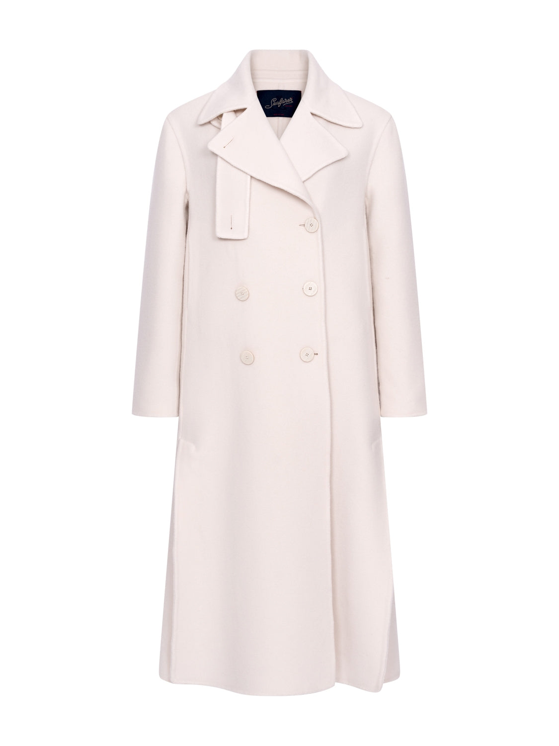 Der lange Mantel Iris von Seafarer verbindet klassische Eleganz mit zeitloser Raffinesse. In einem edlen Cremeton gehalten, strahlt das Modell eine ruhige, stilvolle Ästhetik aus und lässt sich vielseitig kombinieren. Der Doppelreiher verleiht dem Mantel eine markante, elegante Silhouette und unterstreicht die hochwertige Verarbeitung. Die lange Länge sorgt nicht nur für einen eleganten Auftritt, sondern bietet auch zusätzlichen Schutz und Wärme an kühleren Tagen. Durch die sorgfältige Materialwahl und die präzise Verarbeitung wird dieser Mantel zu einem langlebigen, stilvollen Begleiter, der sowohl zu formellen Anlässen als auch zu lässig-eleganten Looks getragen werden kann.