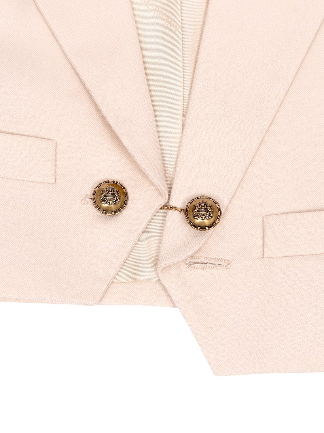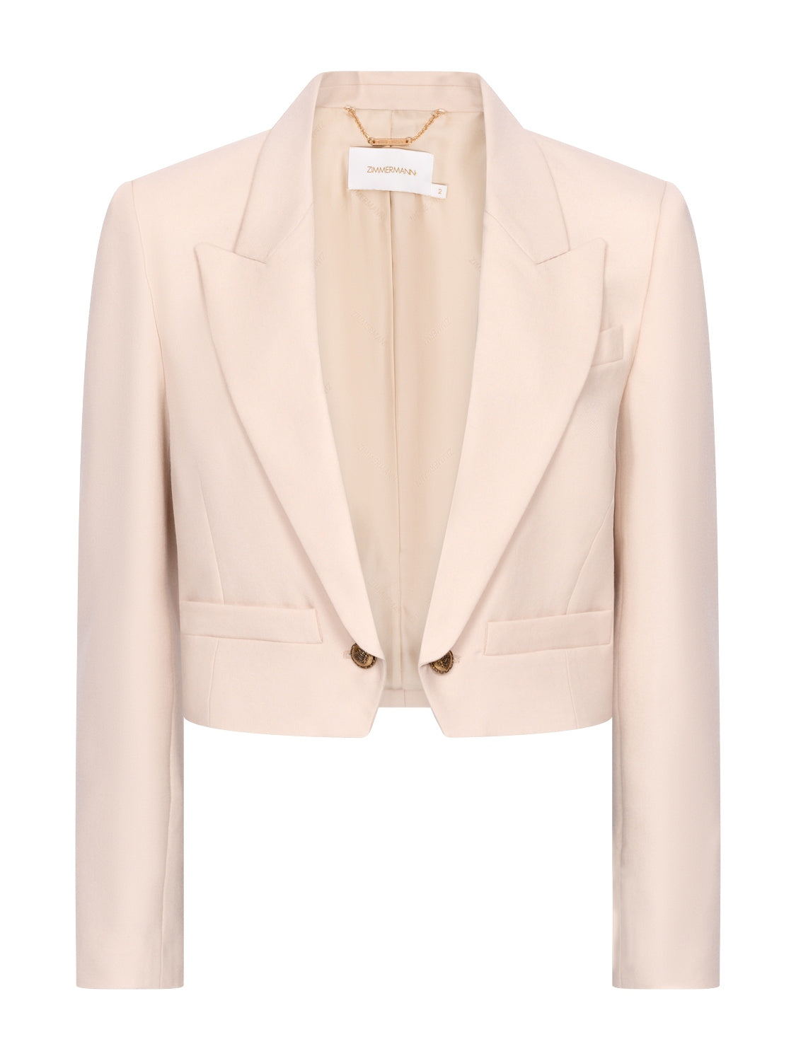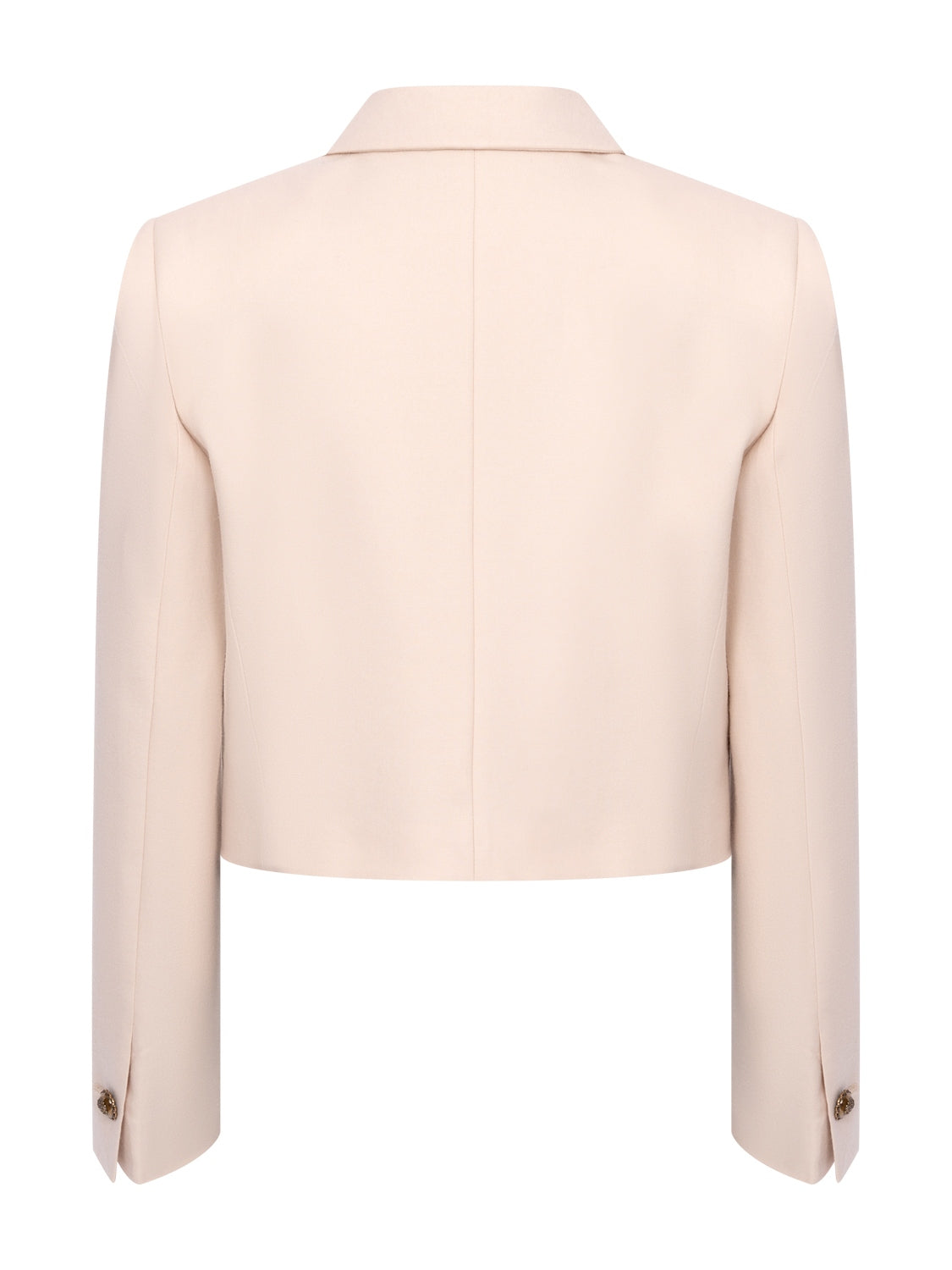 Der Hypnotic Wool Cropped Blazer in Cream aus der Fall 2025 Kollektion „Hypnotic“ verbindet klassische Schneiderkunst mit modernem Design. Gefertigt aus hochwertiger Wolle besticht der Blazer durch seine kurze, trendige Silhouette, einen eleganten Reverskragen und praktische Leistentaschen. Leicht gepolsterte Schultern verleihen Struktur und Form, während dekorative Knöpfe an der Front und an den Ärmelsäumen stilvolle Details setzen. Mit seinem klaren, minimalistischen Look ist dieser Blazer ein vielseitiges Statement-Piece, das sowohl zu formellen Anlässen als auch zu legeren Outfits zeitlose Eleganz ausstrahlt.
