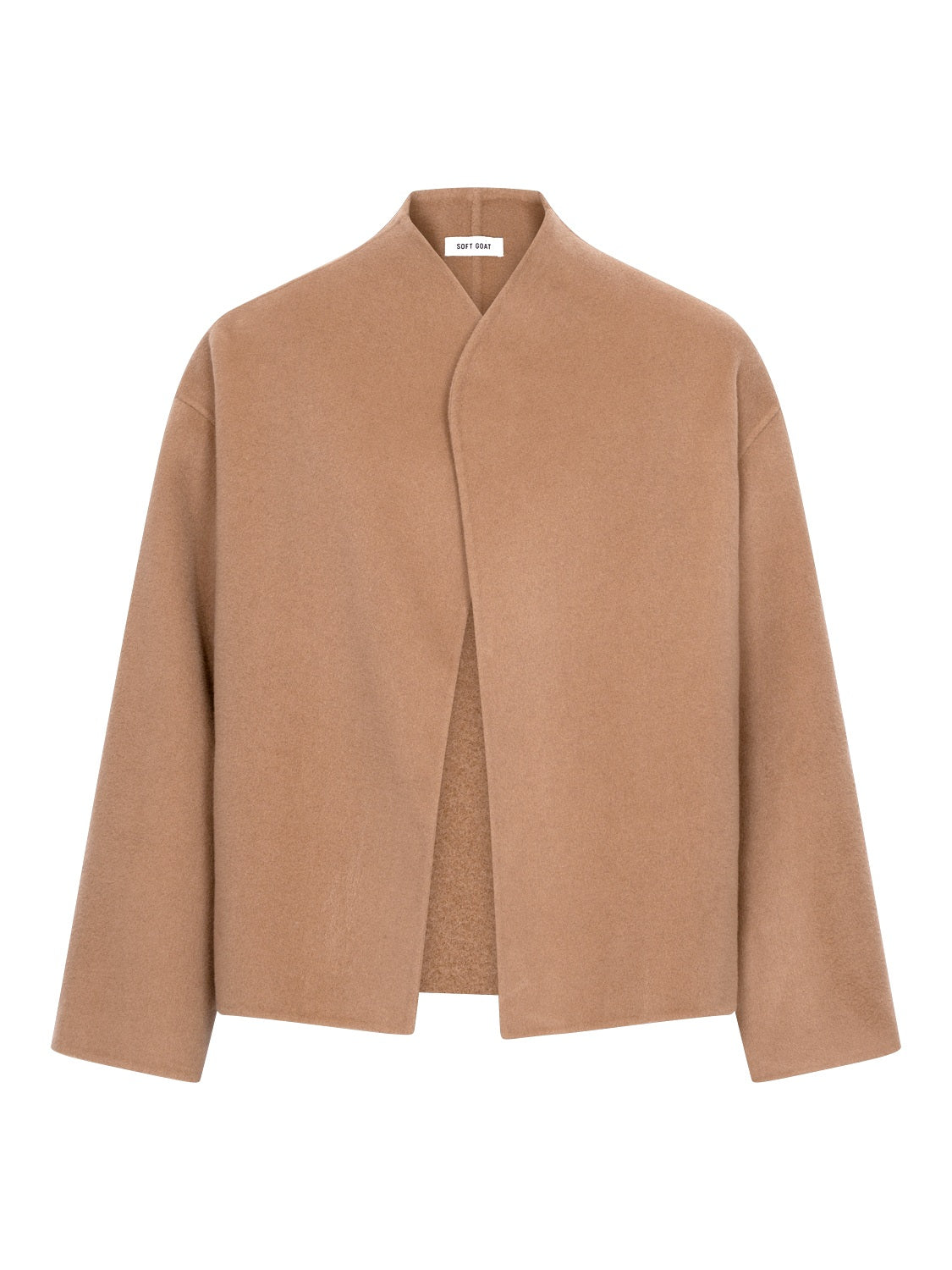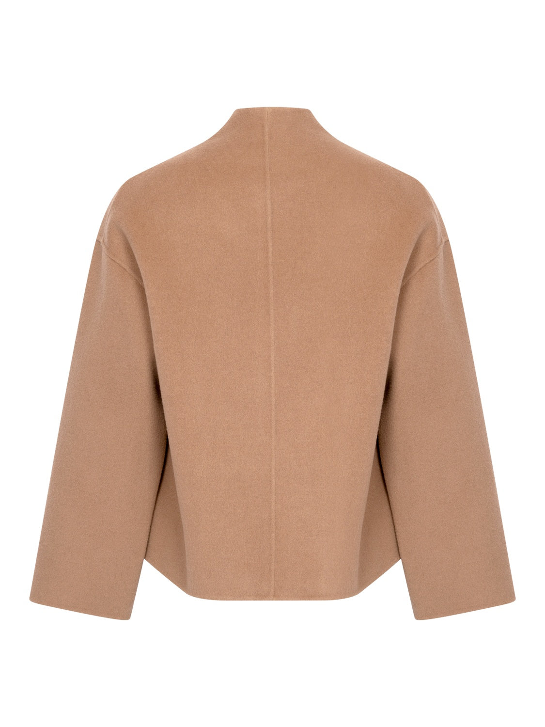 Diese kurz geschnittene Jacke in einem warmen Camelton begeistert mit einem offenen, legeren Schnitt und einer hochwertigen Woll-Kaschmir-Mischung, die für angenehme Wärme und eine edle Haptik sorgt. Die gewebte Struktur verleiht dem Design eine besondere Tiefe und unterstreicht den hochwertigen Charakter des Materials. Dank ihres zeitlosen Looks lässt sich die Jacke vielseitig kombinieren – ob als stilvoller Begleiter im Alltag, als leichter Überwurf in der Übergangszeit oder als elegantes Finish für raffinierte Outfits. Ein modernes Lieblingsstück mit klassischer Eleganz.