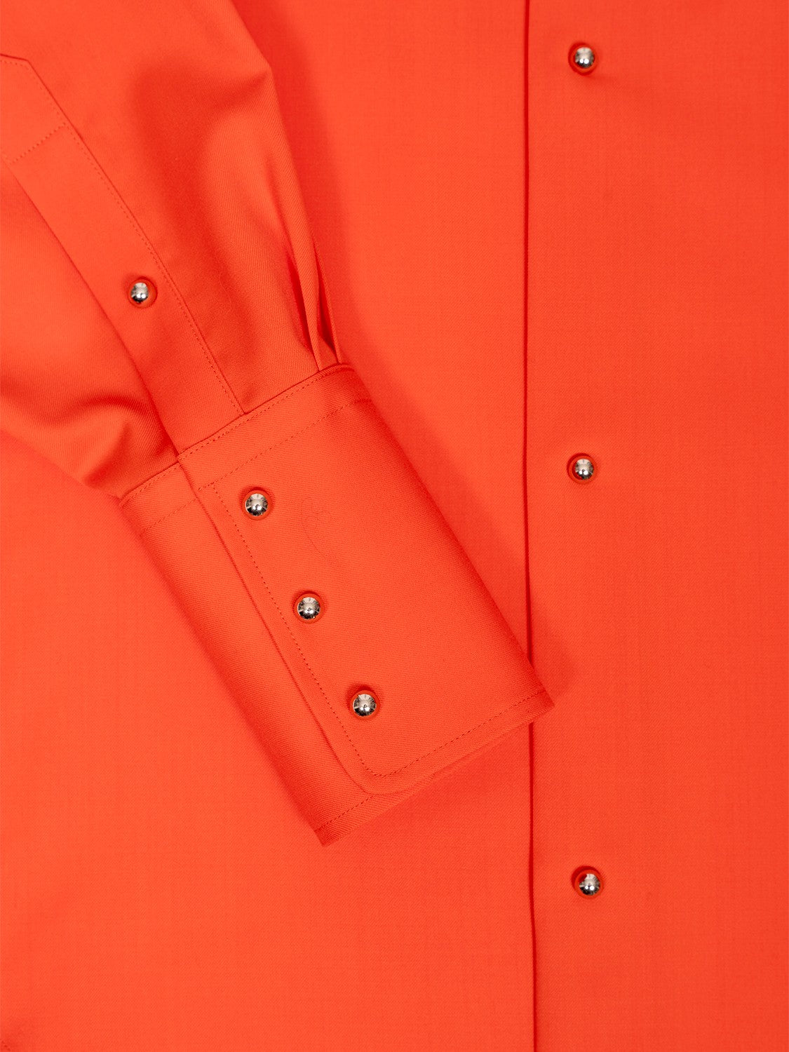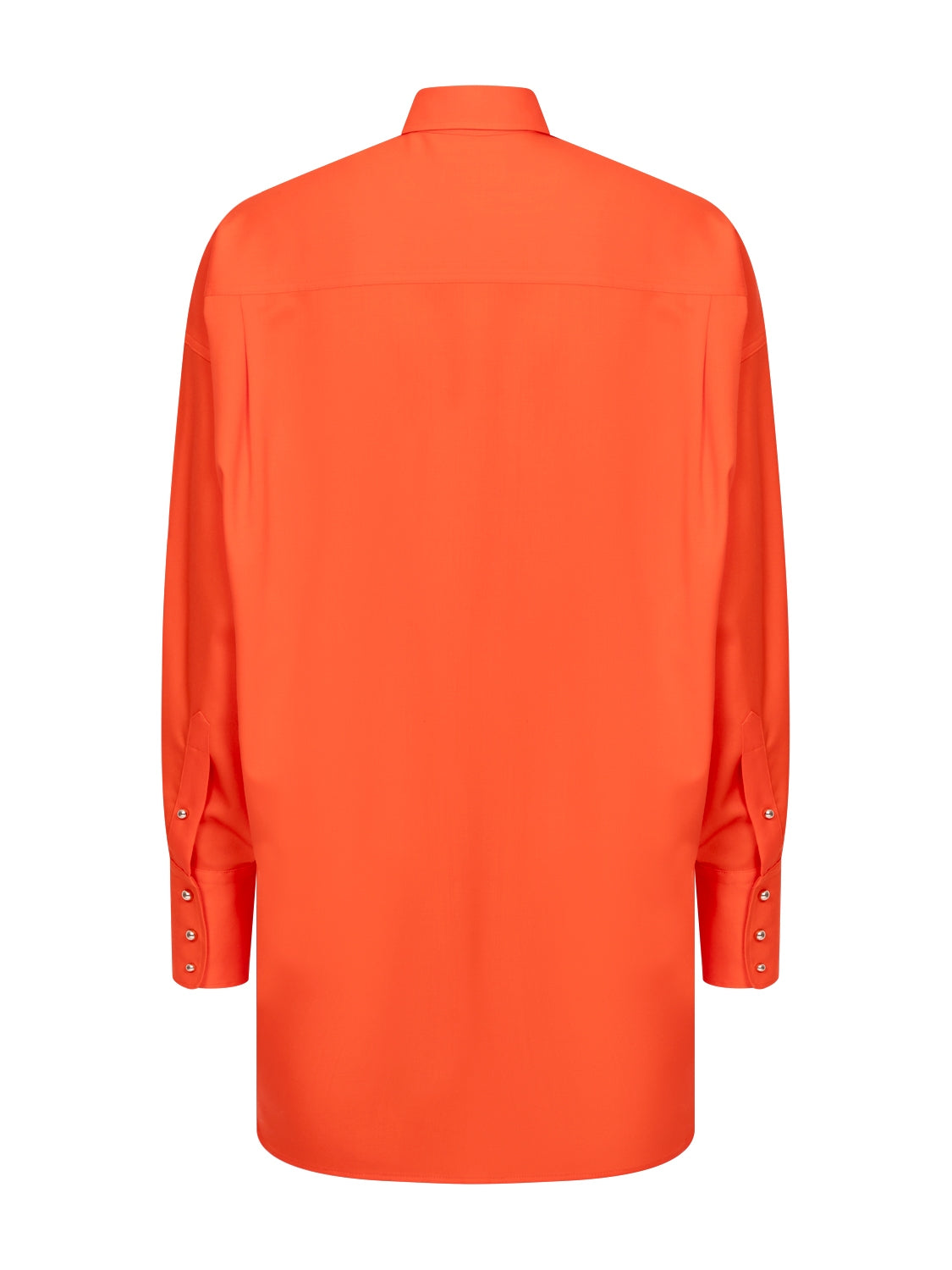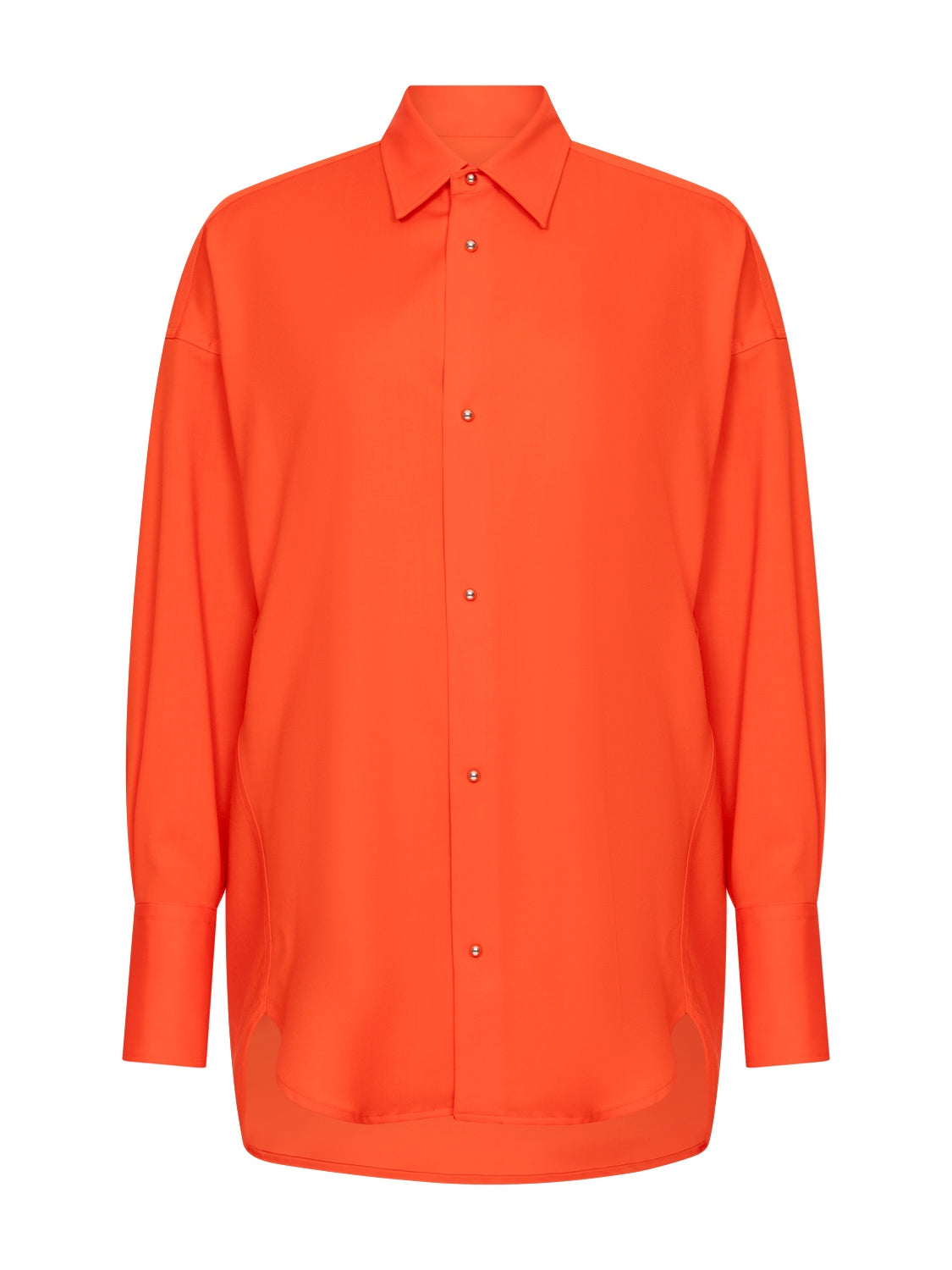 Das orangefarbene Hemd Carla von Darkpark besticht durch seine moderne Oversized-Passform und die hochwertige Verarbeitung aus 100 % reiner Schurwolle. Das leichte Wollgewebe sorgt für ein angenehmes, weiches Tragegefühl und verleiht dem Hemd eine elegante, fließende Struktur. Besonders edel wirken die goldfarbenen Knöpfe, die als stilvolle Details das schlichte Design aufwerten. Dank seines lockeren Schnitts lässt sich das Modell vielseitig kombinieren – ob lässig über einer Hose getragen oder in einen Rock gesteckt. Das Hemd fällt größengetreu aus und vereint auf gelungene Weise zeitlose Eleganz mit modernem Komfort.