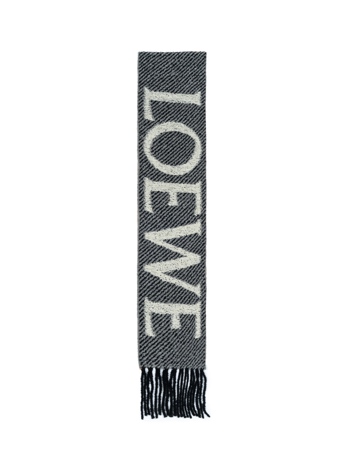 Dieser edle Schal aus einer mittelschweren Mischung aus Alpaka und Wolle besticht durch seine außergewöhnliche Textur und luxuriöse Haptik. Das mehrfarbige Bouclé-Gewebe sorgt für eine interessante, strukturierte Oberfläche, die dem Accessoire Tiefe und Charakter verleiht. Veredelt wird das Design durch ein fein gearbeitetes Loewe-Jacquard-Muster, das dezent den exklusiven Markenstil unterstreicht. Angenehm weich und wärmend, ist dieser Schal ein stilvolles Statement-Piece, das jedem Outfit eine elegante Note verleiht.