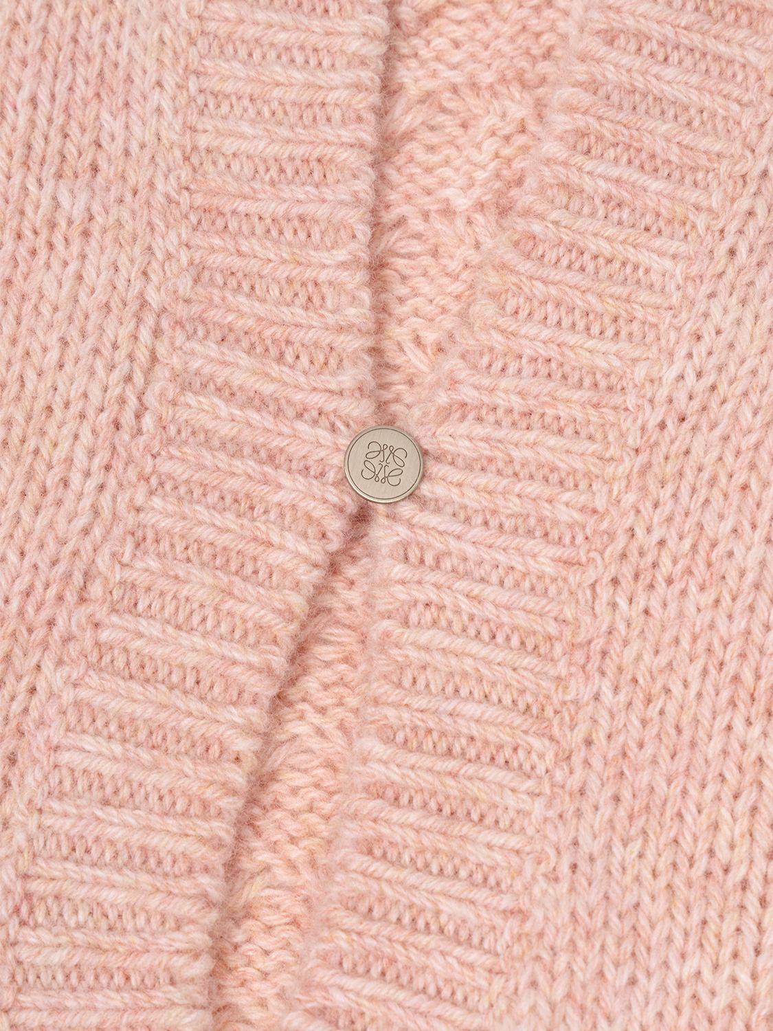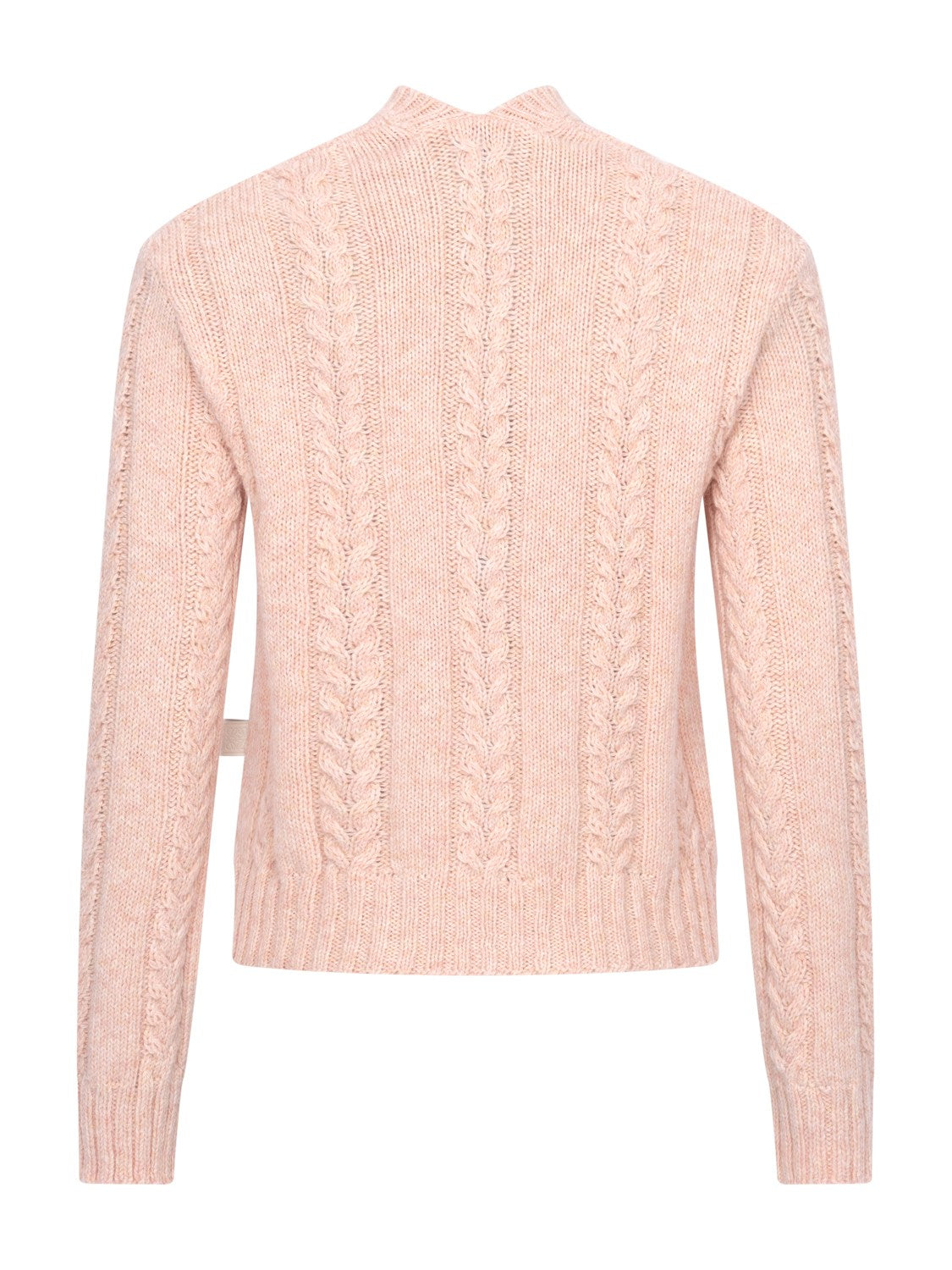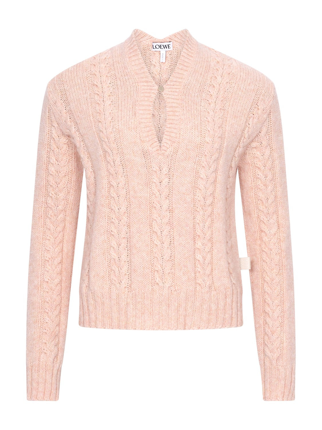 Dieser Pullover aus mittelgewichtiger, strukturiert gearbeiteter Mouliné-Wolle verbindet angenehme Wärme mit einem modernen Designanspruch. Der V-Ausschnitt ist mit einem dezenten Verschluss versehen, der das eingravierte Anagramm-Detail elegant in Szene setzt. Der Sweater kommt in regulärer Passform und klassischer Länge und überzeugt durch klare Linien und einen zeitlosen Charakter. Gerippte Abschlüsse an Kragen, Bündchen und Saum sorgen für Formstabilität und ein gepflegtes Finish. Abgerundet wird das Modell durch ein kleines Leder-Tab mit Anagramm-Logo an der Seite – ein feines Detail, das dezenten Markenstil verkörpert.