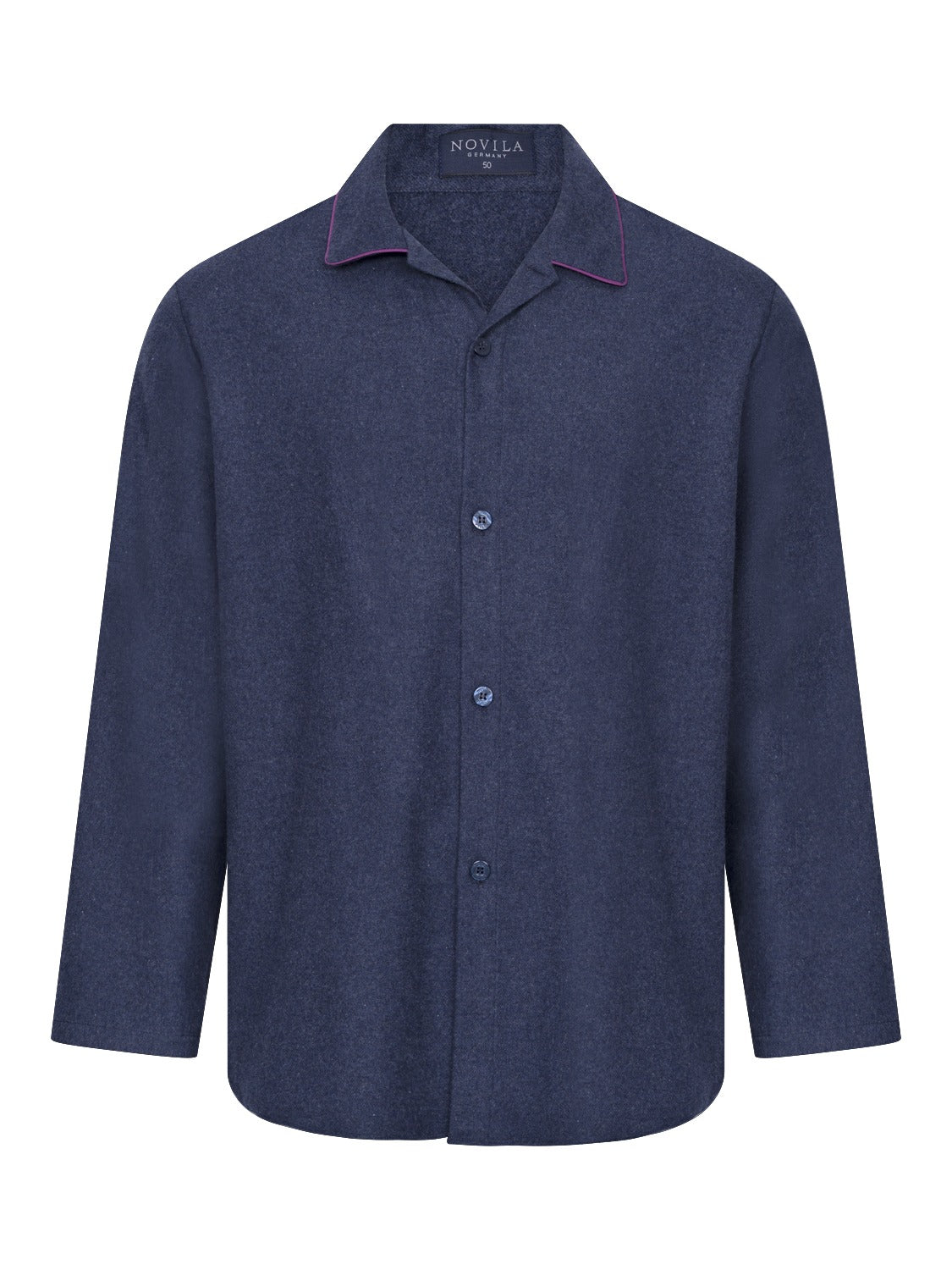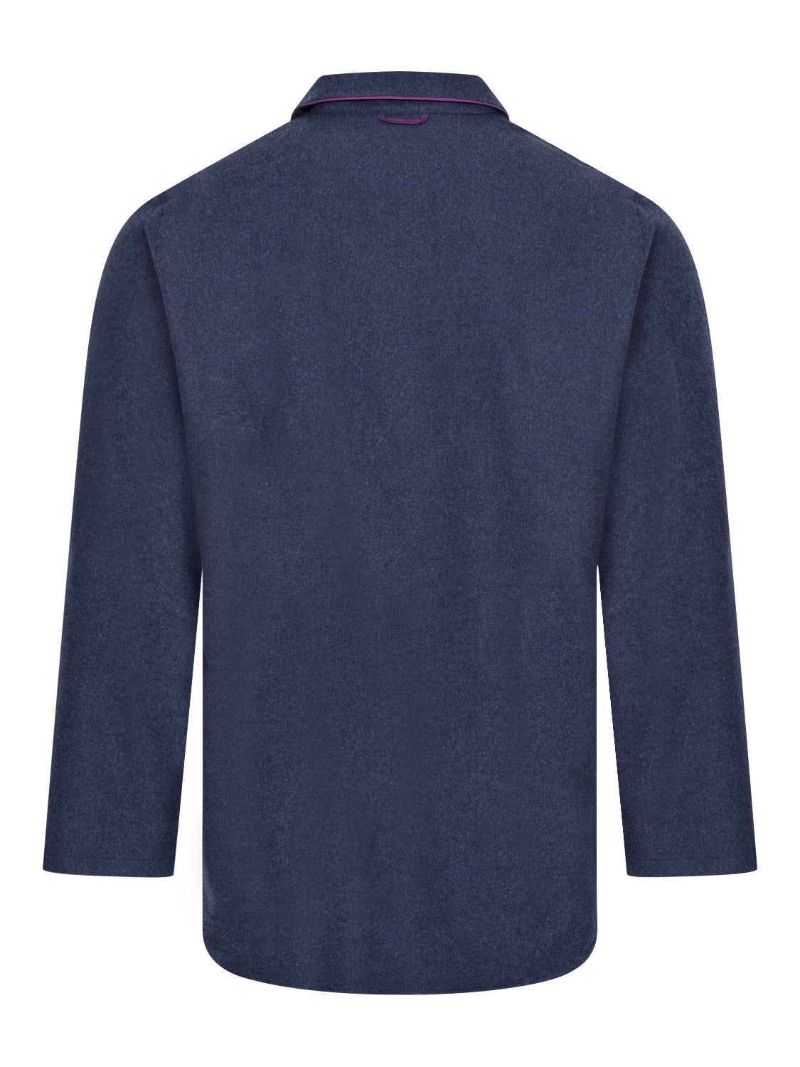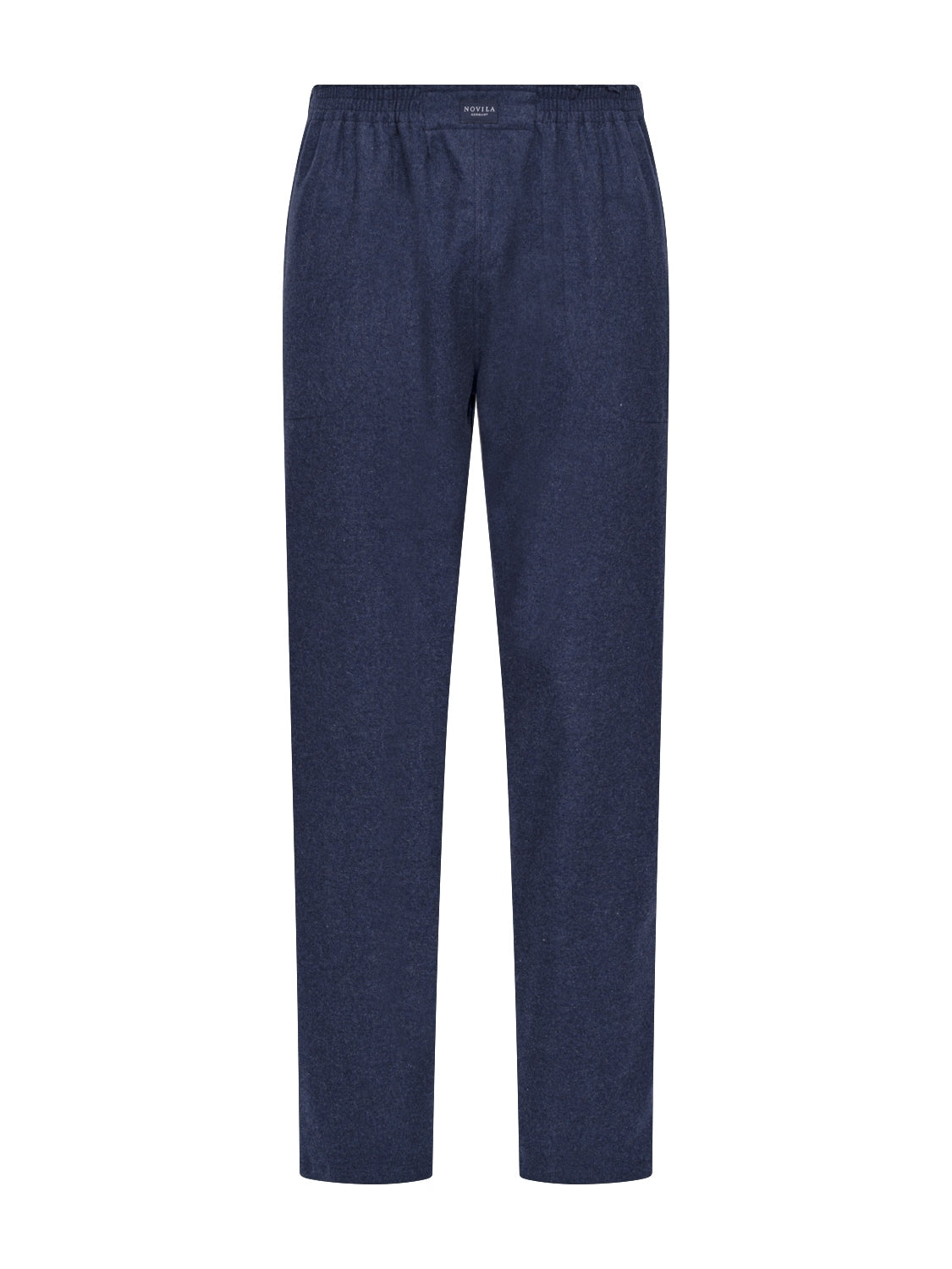 Dieser Pyjama in klassisch-zeitlosem Grau erhält durch die feinen lila Abschlüsse eine stilvolle Note. Die Jacke überzeugt mit abgerundetem Saum sowie eleganter Paspelierung an Kragen und Ärmeln. Die Hose ist mit zwei praktischen Seitennahttaschen ausgestattet und kommt bewusst ohne Eingriff aus – für eine klare, moderne Linienführung. Der komfortable Novila-Bund sowie ein Aufhänger sorgen für zusätzlichen Tragekomfort und Funktionalität. Ein durchdachtes Design für entspannte Stunden mit Stil.