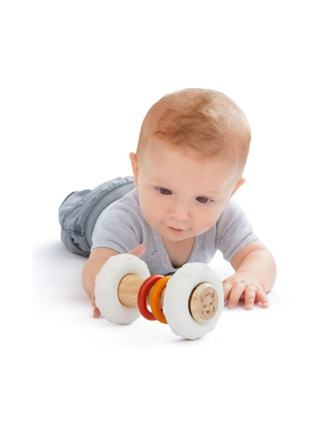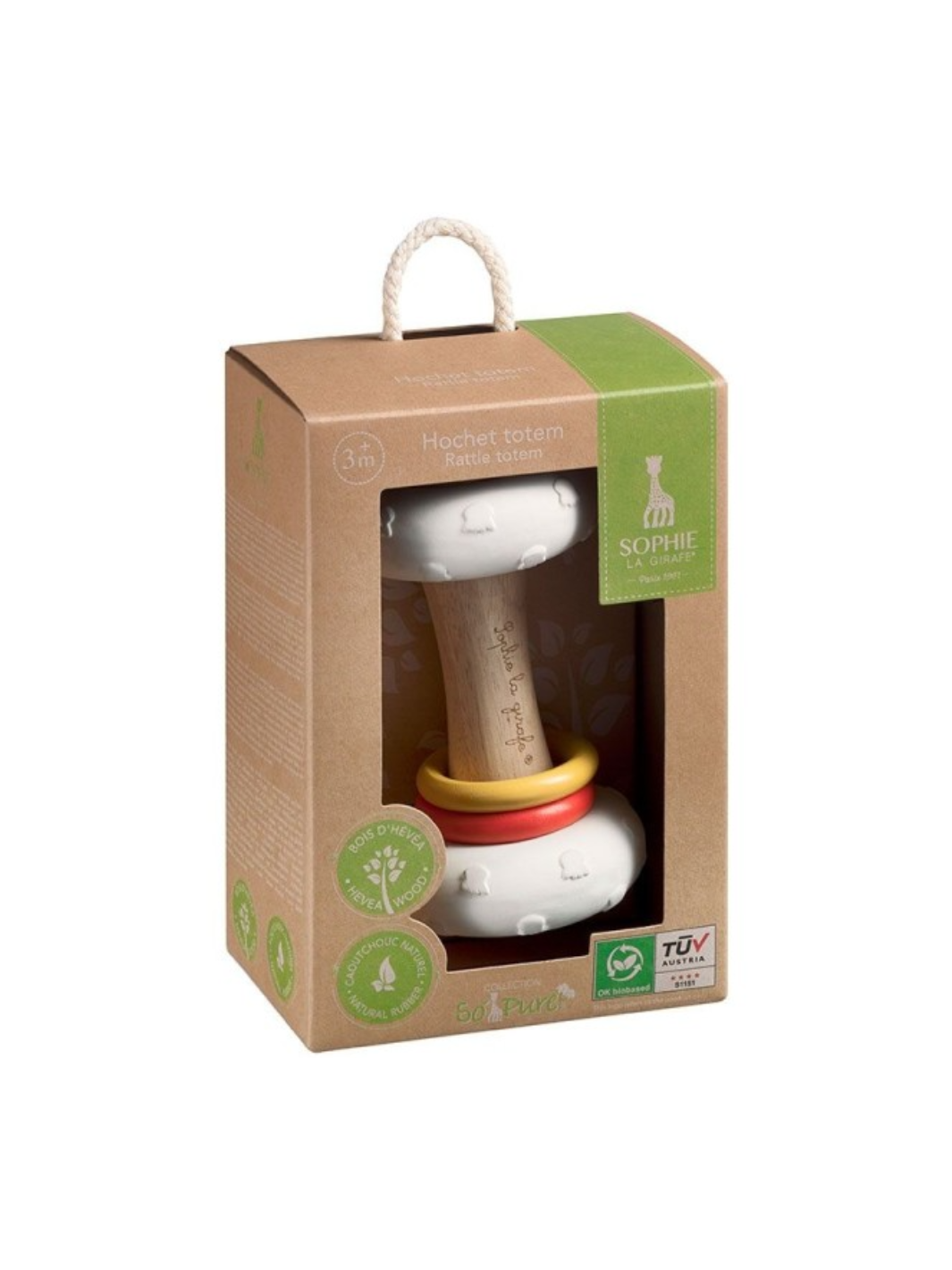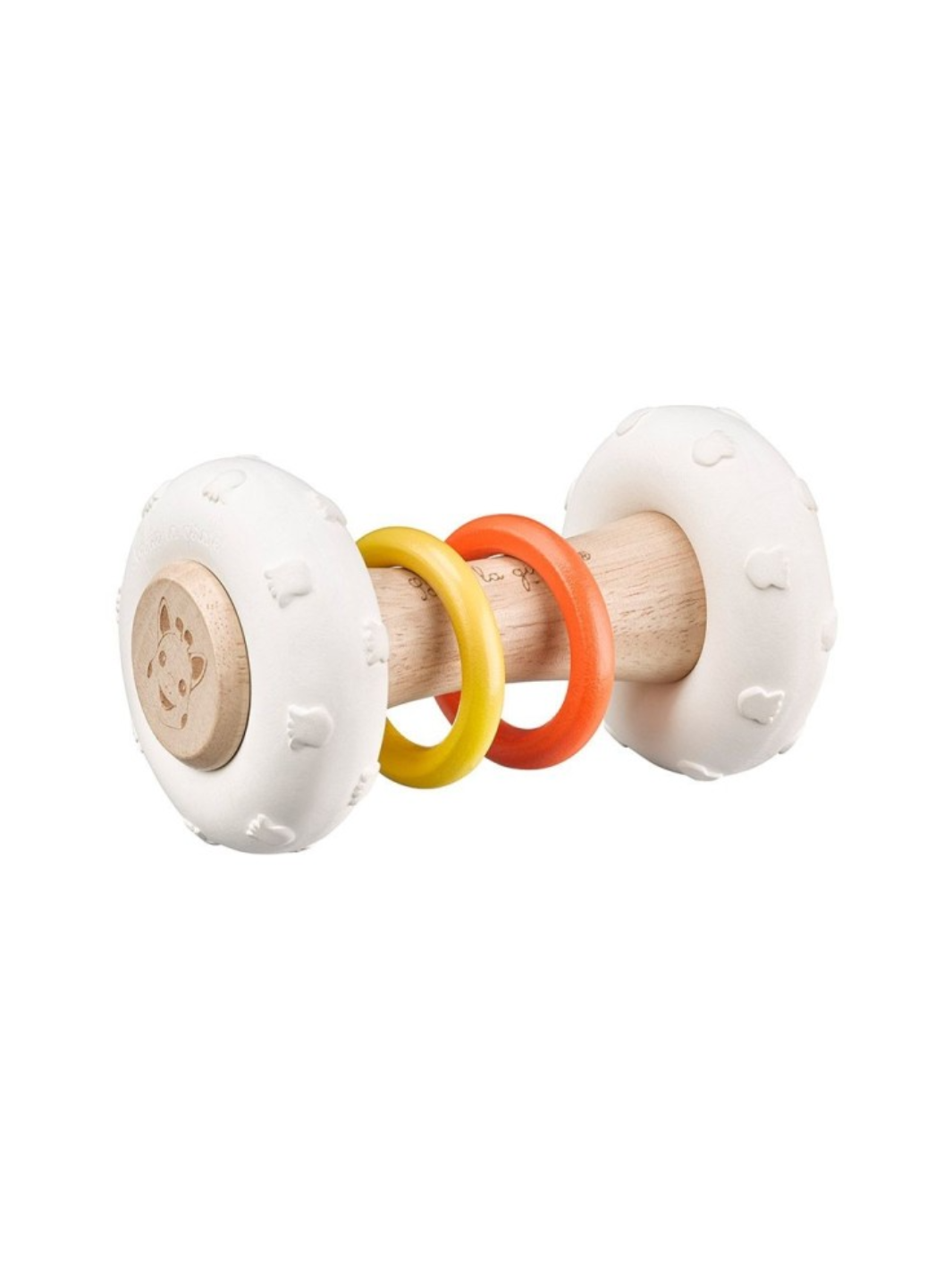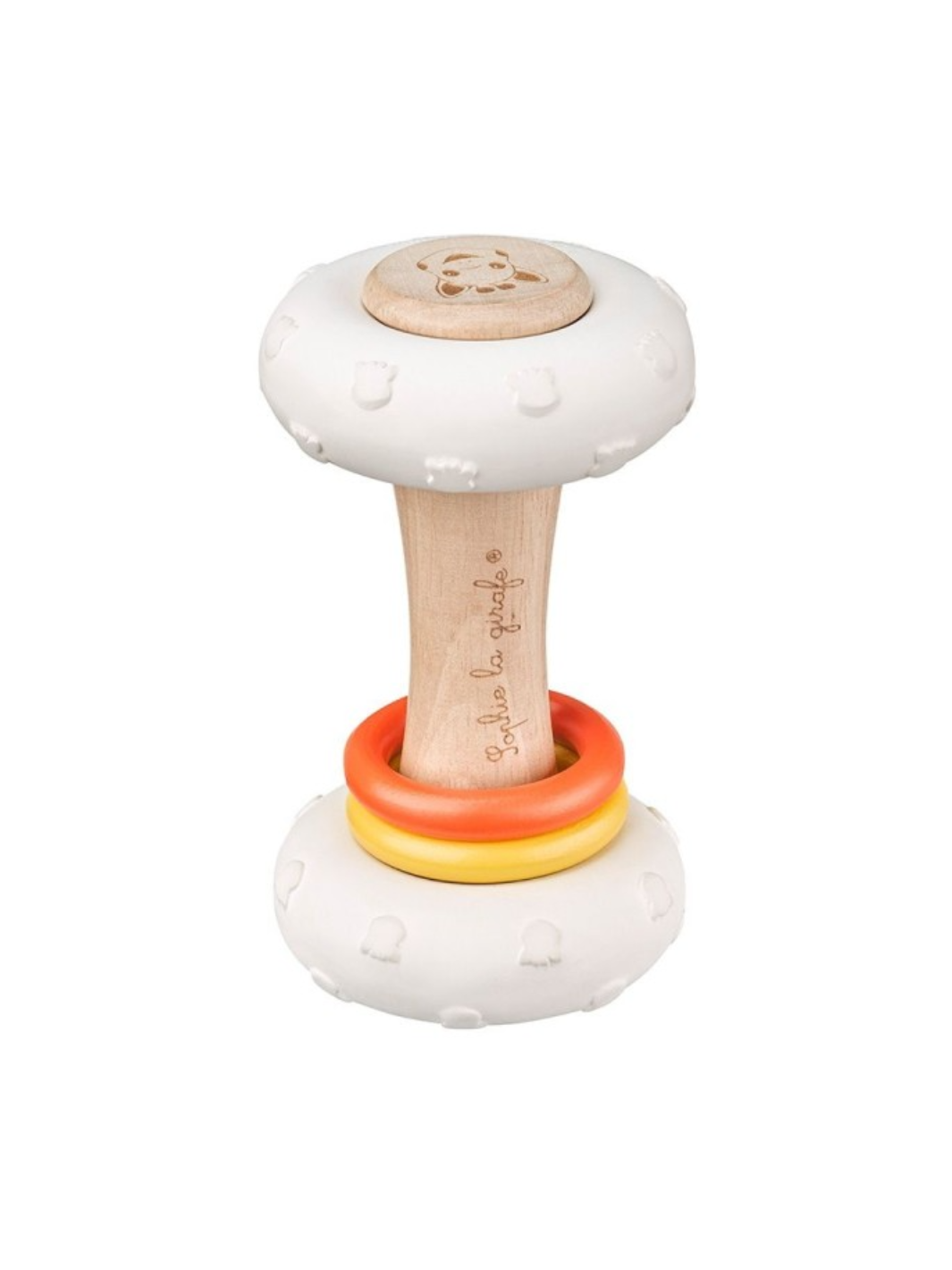 Diese vielseitige Totem-Rassel gefertigt aus 100 % aus Naturkautschuk und 100 % Kautschukbaumholz fördert die Entwicklung von Babys Sinnen: Kugeln im Griff lassen sie rasseln und zwei bunte Holzringe klappern. Zwei Materialien sorgen für unterschiedliche taktile Reize. Die beiden Ringe aus Naturkautschuk sind strukturiert und lassen sich abnehmen, um den Zahlungsschmerz der Kleinen zu lindern.