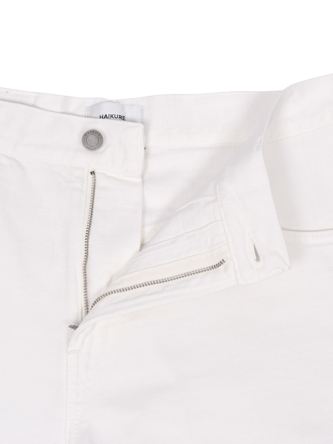 Die Hose von Haikure besticht durch ihre hohe Leibhöhe und das leicht ausgestellte Bein, das eine moderne, feminine Silhouette zaubert. Ausgestattet mit einem praktischen Zip-Fly-Verschluss und dem klassischen 5-Pocket-Style, verbindet sie zeitlose Denim-Ästhetik mit hoher Funktionalität. Ein dezentes Label-Badge am Bund unterstreicht die exklusive Markenidentität, während optische Sitzfalten für einen stilvollen, raffinierten Look sorgen. Dieses Modell verkörpert Haikures charakteristische Verbindung aus italienischer Handwerkskunst, minimalistischem Design und moderner Lässigkeit, sodass es sich mühelos in verschiedenste Outfits integrieren lässt.