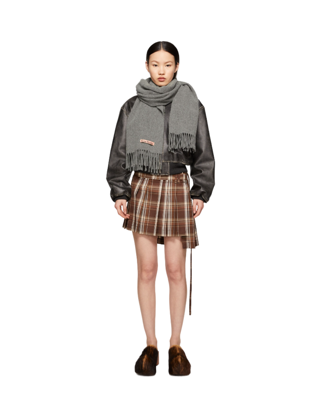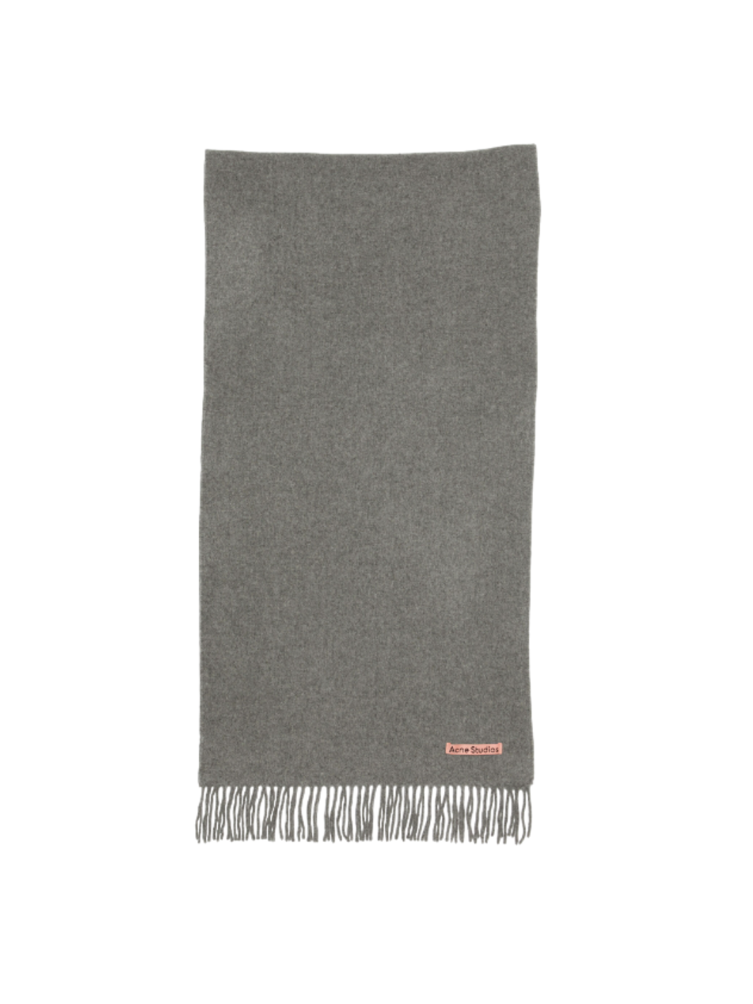 Der schmale Fransenschal ist aus mittelschwerer Wolle mit weicher Haptik gefertigt und mit einem rosafarbenen Acne Studios-Etikett versehen. Die Fransen verleihen dem Schal einen lässigen Look.