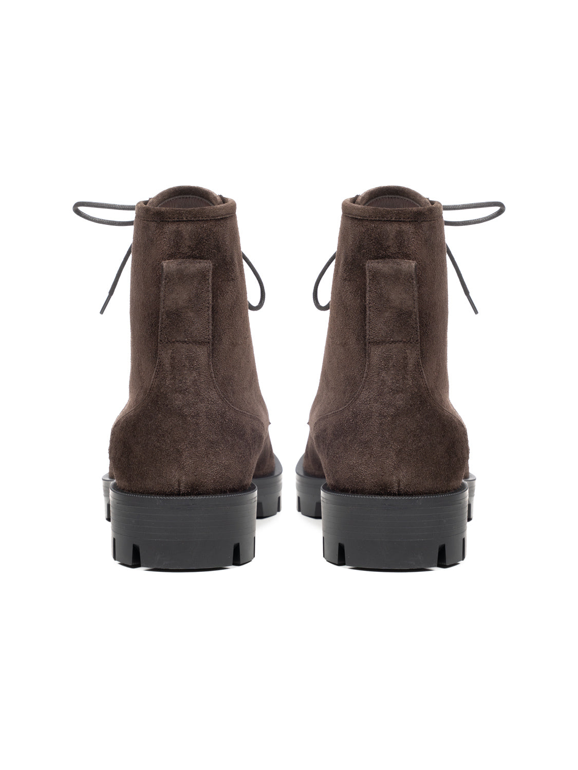 Der Caracolo Lion präsentiert sich als markanter Schnürstiefel mit urbanem Charakter, inspiriert von klaren, militärischen Linien. Die leicht kantige Zehenform verleiht dem Design eine moderne Note, während die profilierte, gezackte Sohle für einen robusten Auftritt sorgt. Gefertigt von Maison Christian Louboutin aus hochwertigem, umgekehrtem Kalbsleder in warmem Cafébraun, überzeugt das Modell durch seine edle Materialwahl. Die Schnürung mit Metallösen sowie die praktische Fersenschlaufe ergänzen das Design funktional und stilvoll. Ein ausdrucksstarker Stiefel, der urbane Coolness mit luxuriöser Handwerkskunst vereint.