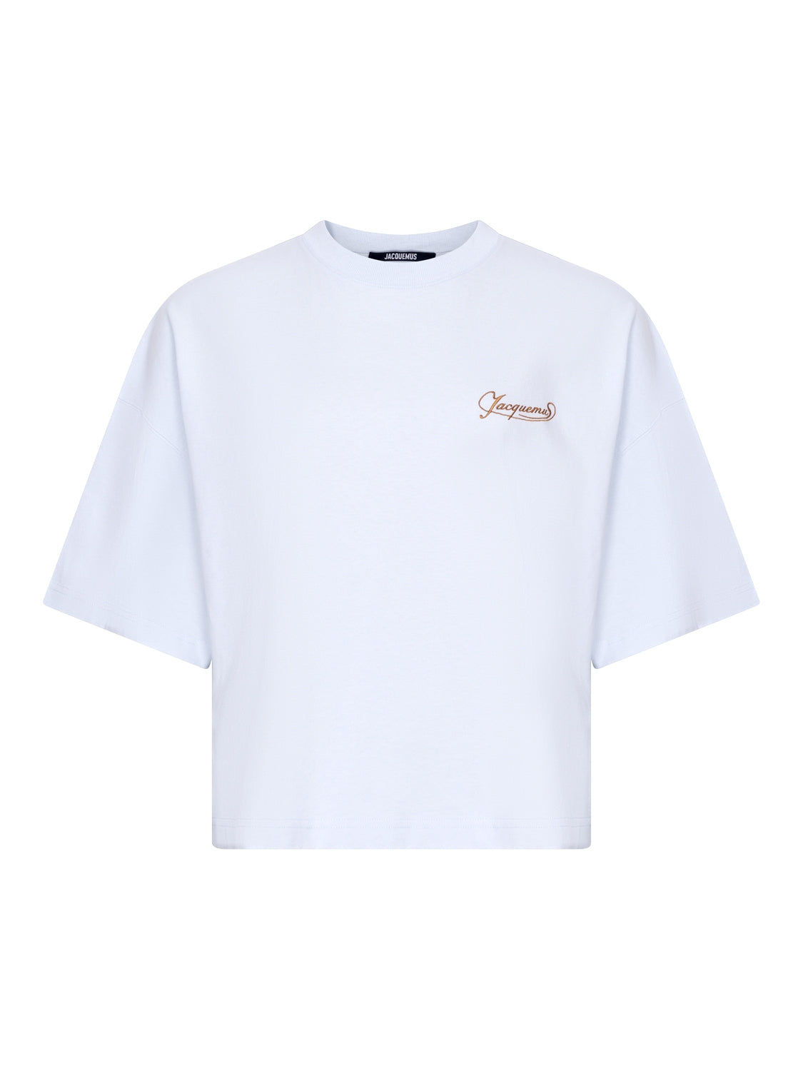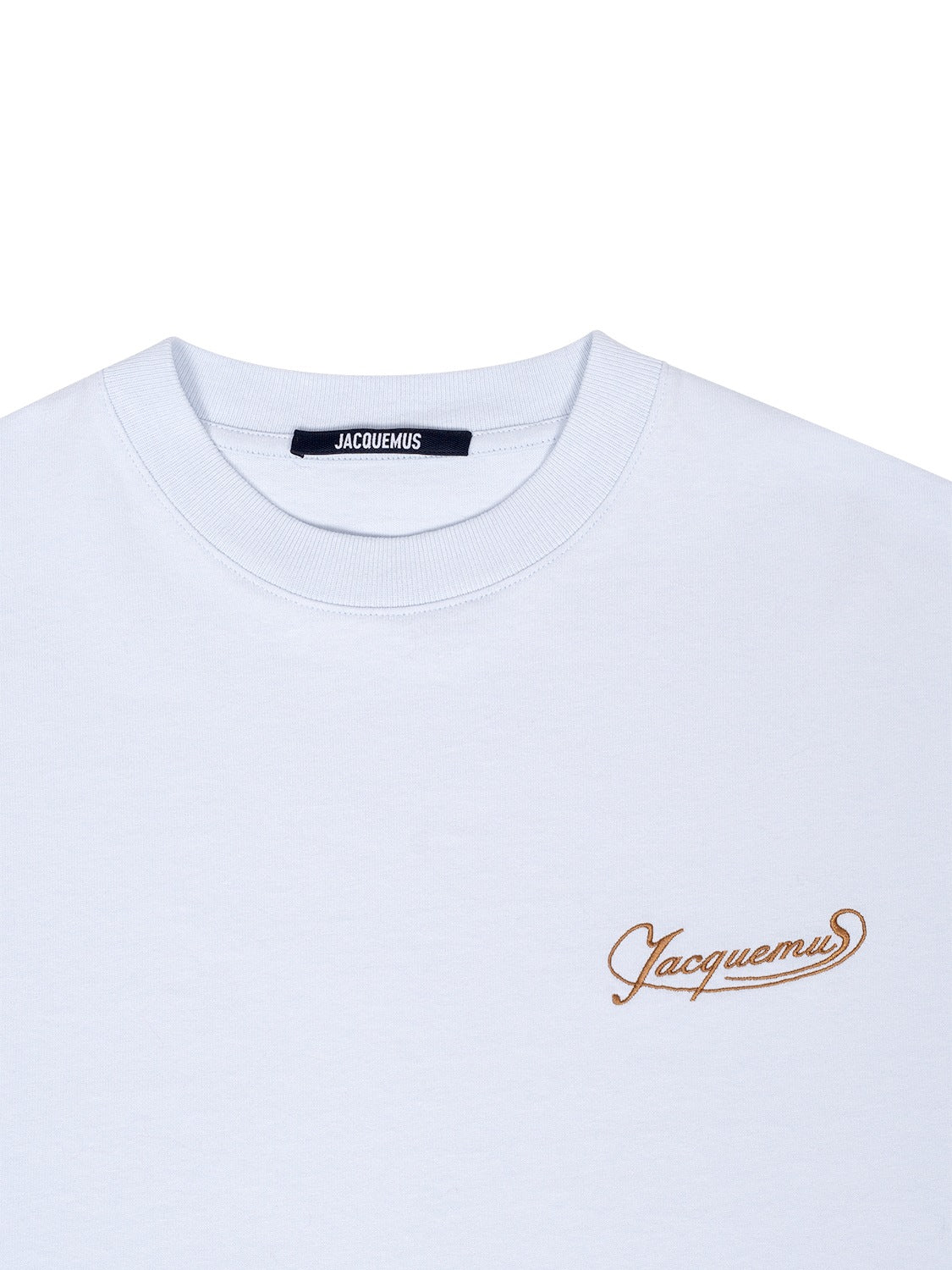 Das Corto T-Shirt von Jacquemus überzeugt mit einer klaren, modern geschnittenen Cropped-Silhouette, die dem Look eine frische und zugleich feminine Note verleiht. Gefertigt aus reiner, angenehm weicher Baumwolle, präsentiert sich das Modell in einem sanften Pastellblau, das perfekt zur leichten, sommerlichen Ausstrahlung des Designs passt. Auf der Brust setzt eine liebevoll gearbeitete Logostickerei im typischen 50er-Jahre-Stil einen dezenten Retro-Akzent, der dem T-Shirt seinen unverwechselbaren Jacquemus-Charakter verleiht.