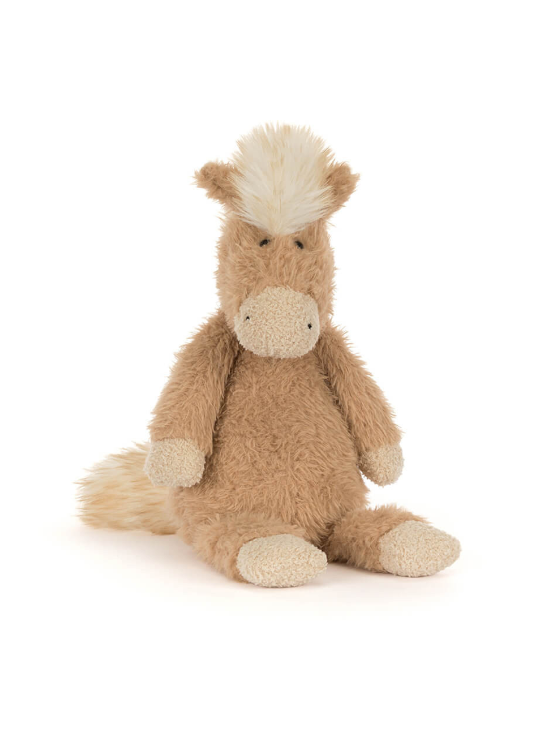 Das Canterneigh Pony von Jellycat sitzt gern in deiner Nähe und schaut dich mit seinen teuren Ponyaugen an. Mit seinem weichen, hellbraunen Fell, der flauschigen Mähne und dem buschigen Schweif lässt das charismatische Pony die Herzen aller Pferdeliebhaber höher schlagen.