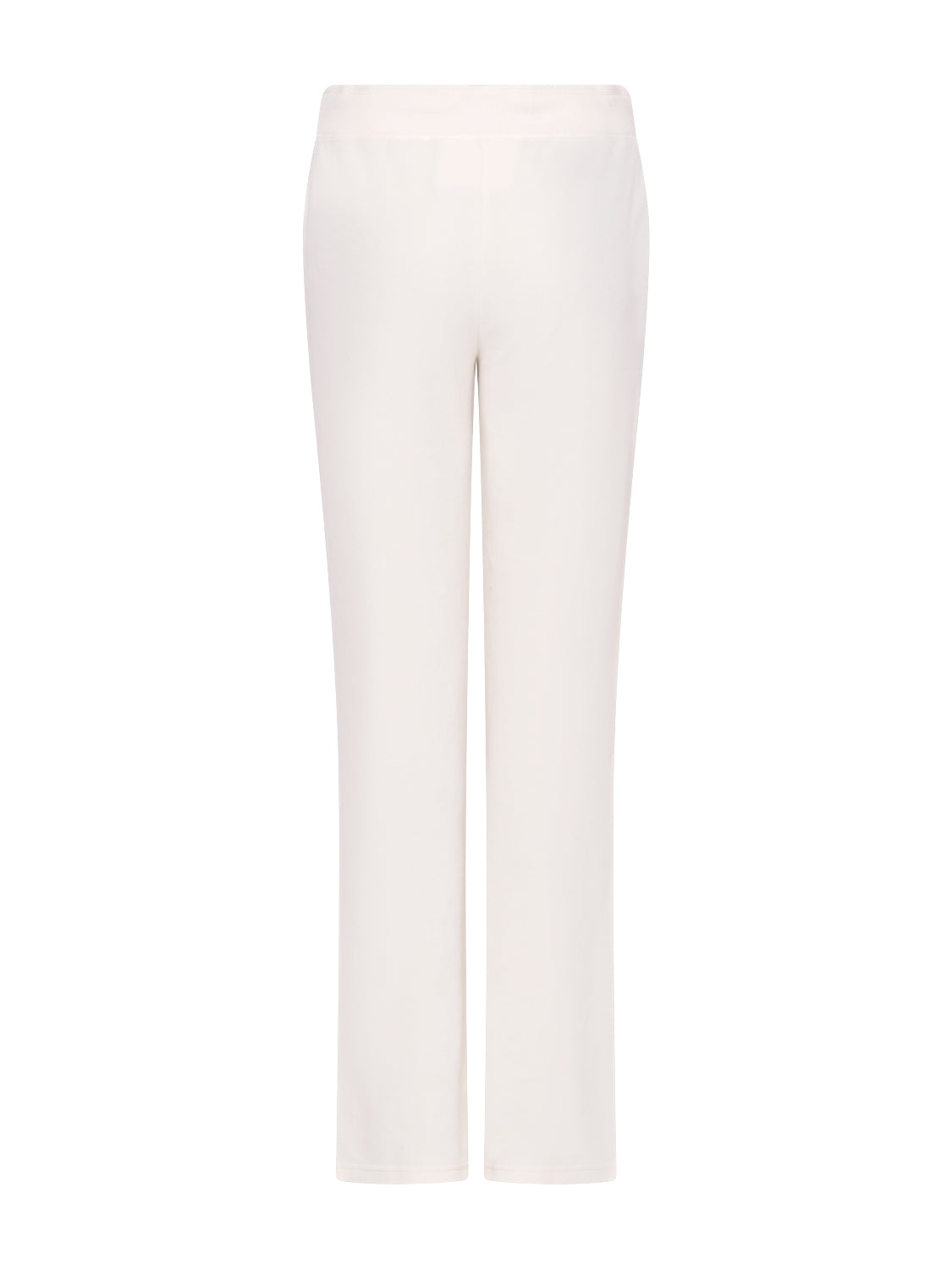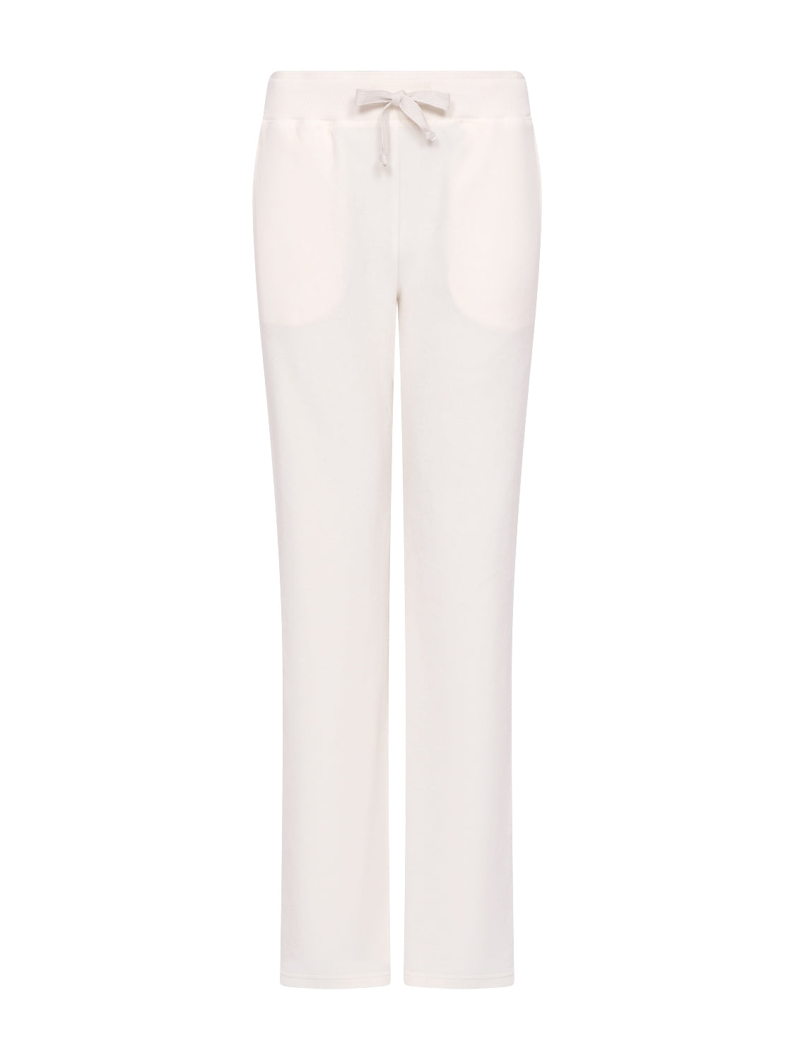 Diese Sweatpants in der edlen Farbe Eggshell vereinen luxuriösen Komfort mit modernem Design. Die zarte Samt-Qualität im soften Baumwoll-Mix verleiht der Hose nicht nur eine elegante Optik, sondern auch eine besonders weiche Haptik – ideal für entspannte Stunden mit Stil. Der gerade, weite Beinverlauf sorgt für eine lässige Silhouette, während der elastische Rippbund mit Tunnelzug und toniger Ripsbandkordel eine individuelle Passform ermöglicht und zugleich einen dezenten Akzent setzt. Seitliche Eingrifftaschen fügen sich harmonisch ins cleane Design ein, und doppelt vernähte Saumabschlüsse sowie die weich angeraute Innenseite unterstreichen die hochwertige Verarbeitung. Eine stilvolle Loungewear-Hose, die Komfort und Raffinesse mühelos verbindet.