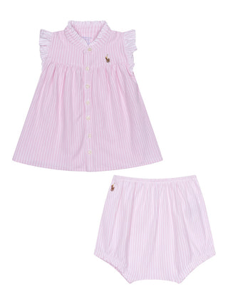 2-Teiler aus Bluse und Bloomer - Rosa/Weiß