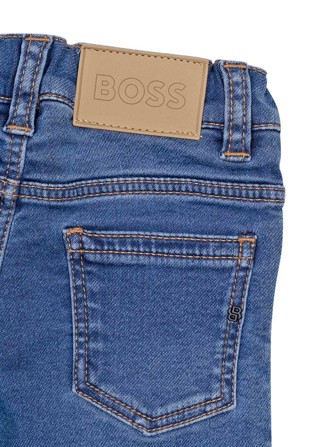 Diese figurbetonte Jeans von Boss besticht mit einem klassischen Five-Pocket-Design und einem geraden Bein. Ein bequemes Denim-Essential für die Kindergarderobe. Gefertigt aus einer robusten Baumwollmischung, lässt sich die Jeans sowohl lässig zu T-Shirt oder Sweater stylen als auch als spannenden Bruch zu weichen Materialien wie Strick oder Leinen.