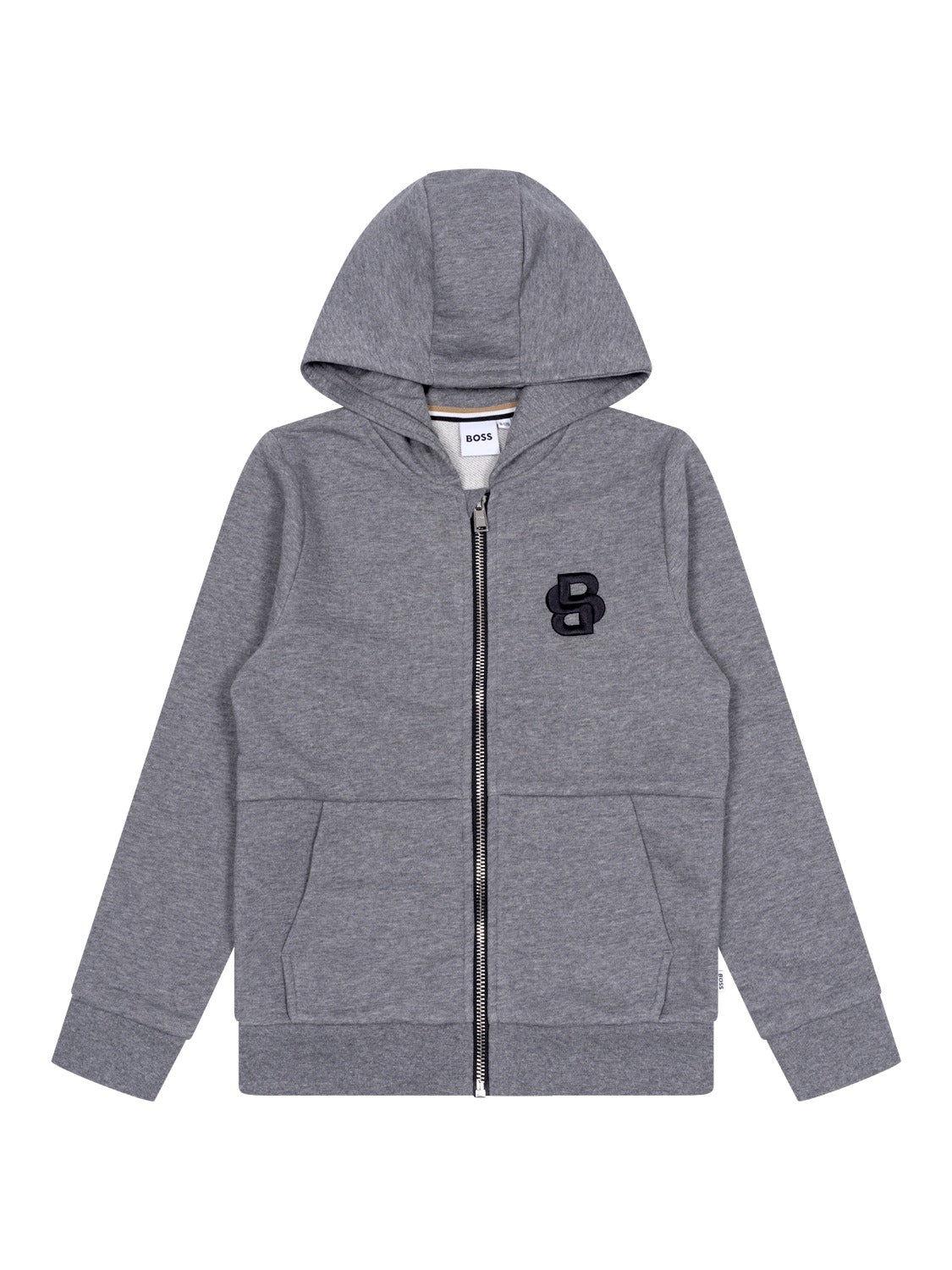 Dieser lässige Hoodie in Grau von Boss ist ein lässiges Must-have für die Kindergarderobe und überzeugt mit einer Fertigung aus einer komfortablen gebürsteten Baumwoll-Mischung mit Fleece-Struktur. Vorne werden von der charakteristischen Double-B-Monogramm-Stickerei in kontrastierendem Schwarz labeltypische Akzente gesetzt.