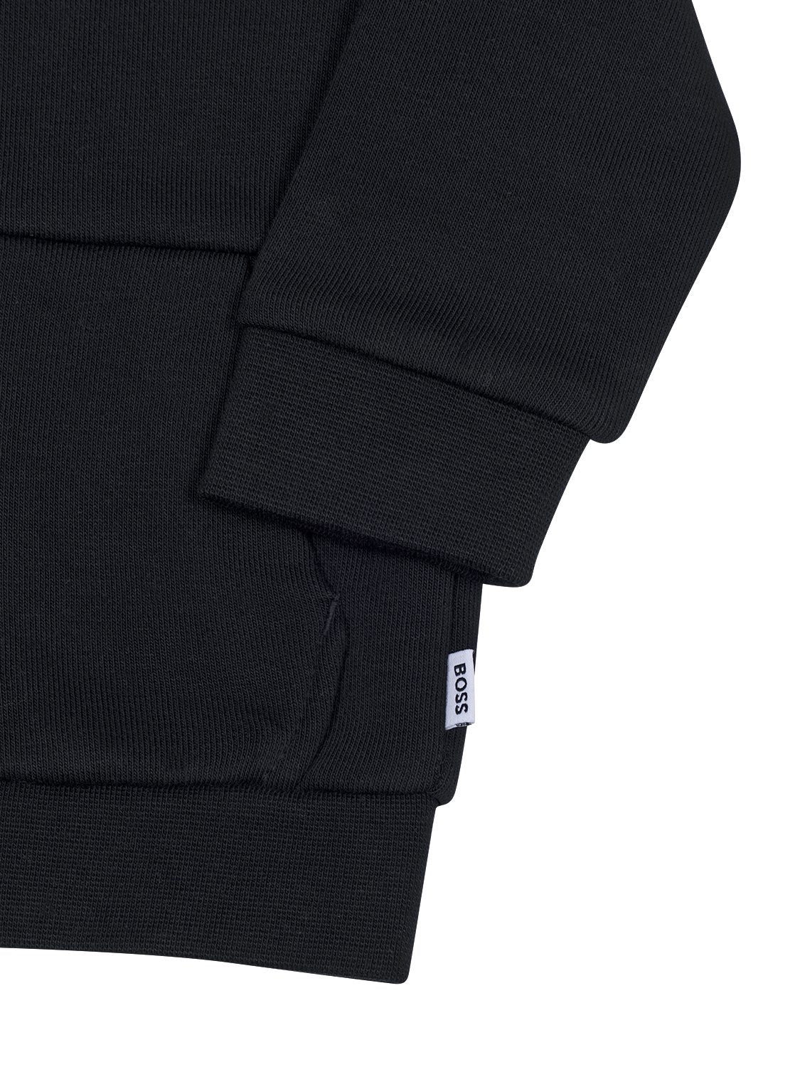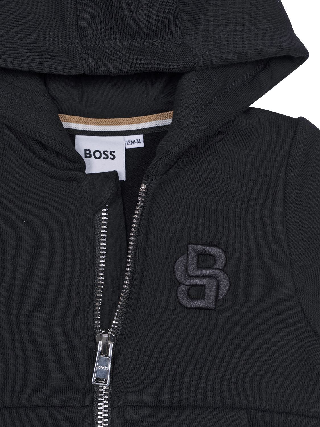 Dieser Jogging-Zweiteiler in Schwarz von Boss besteht aus einer Sweatjacke mit passender Hose und überzeugt mit einer weichen Material-Qualität aus einem hochwertigen Baumwollmix mit einer kuschelweichen Fleece-Innenseite.
