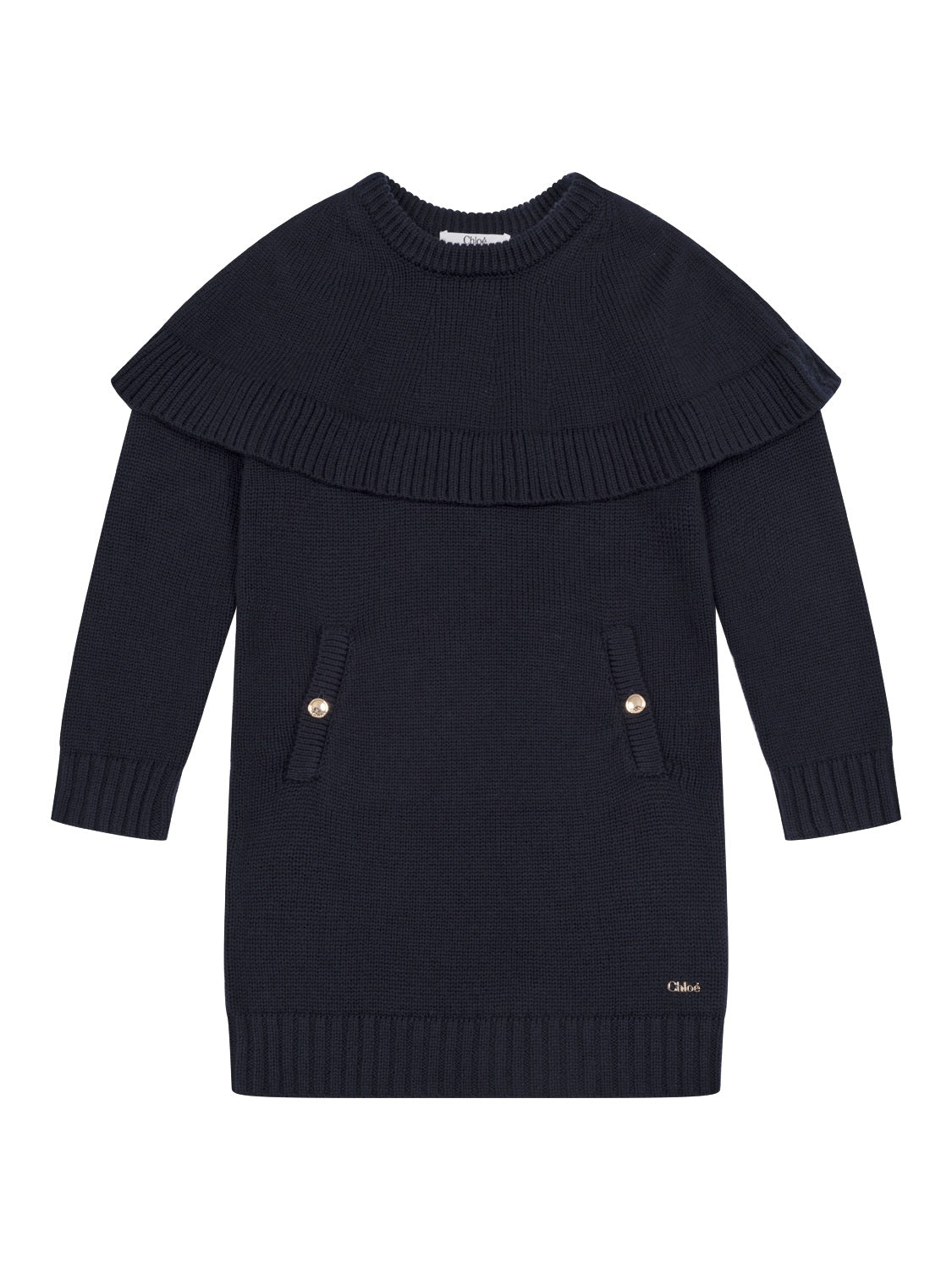 Dieses exklusive Strickkleid in Marine von Chloé Kids ist eine raffinierte Wahl für einen zeitlos eleganten Stil. Das Modell begeistert durch schlichte Eleganz und eine hochwertige Verarbeitung aus Baumwolle und Wolle, für traumhafte Tragemomente. Ein klassischer Schnitt bis über das Knie erhält von funktionalen Taschen mit edlen, goldfarbenen Knöpfen das gewisse Etwas, während vorne die goldfarbene Logo-Stickerei ein ikonisches Statement setzt.
