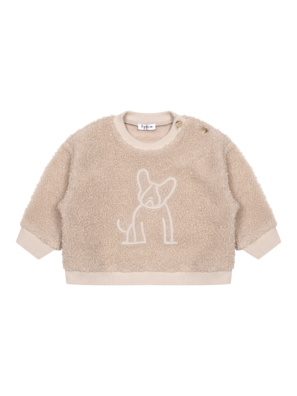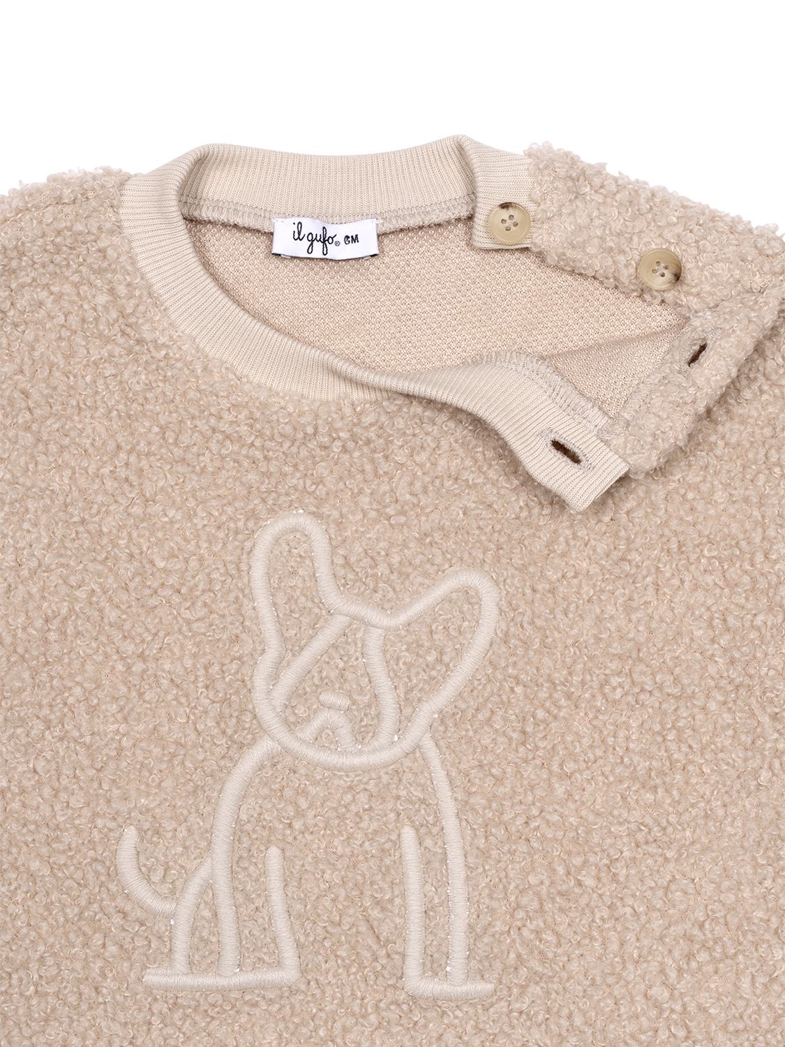 Dieses zweiteilige Baby-Set in Beige von Il Gufo besteht aus einem Teddyfleece-Sweatshirt sowie einer Teddyfleece-Jogginghose. Der Sweater präsentiert auf der Vorderseite eine raffinierte Hunde-Stickerei und ist mit einem gerippten Rundhalsausschnitt, einem praktischen Knopfverschluss an der Schulter sowie gerippten Abschlüssen an Bündchen und Saum versehen. Die Hose ist mit einem bequemen, elastischen Bund ausgestattet und komplettiert das unwiderstehliche Outfit gekonnt.