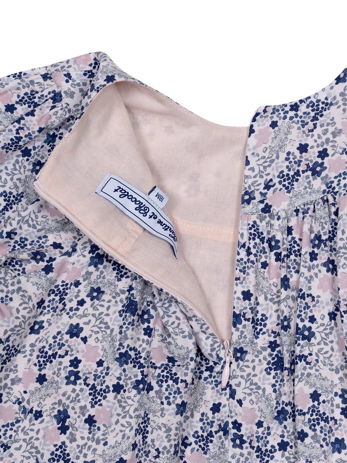 Dieses bezaubernde Kleid für Mädchen von Tartine et Chocolat besteht aus leichtem Viskose-Material mit einem floralen Allover-Print in Dunkelblau, Rosa und Weiß, welcher den niedlichen Look gekonnt vollendet. Für zusätzlichen Komfort ist das Kleid mit einem Baumwollfutter ausgestattet. Neben einem Rundhalsausschnitt verfügt das Modell über eine leicht ausgestellte Form, lange Puffärmel mit elastischen Bündchen sowie einen versteckten Reißverschluss auf der Rückseite, um das An- und Ausziehen zu erleichtern.