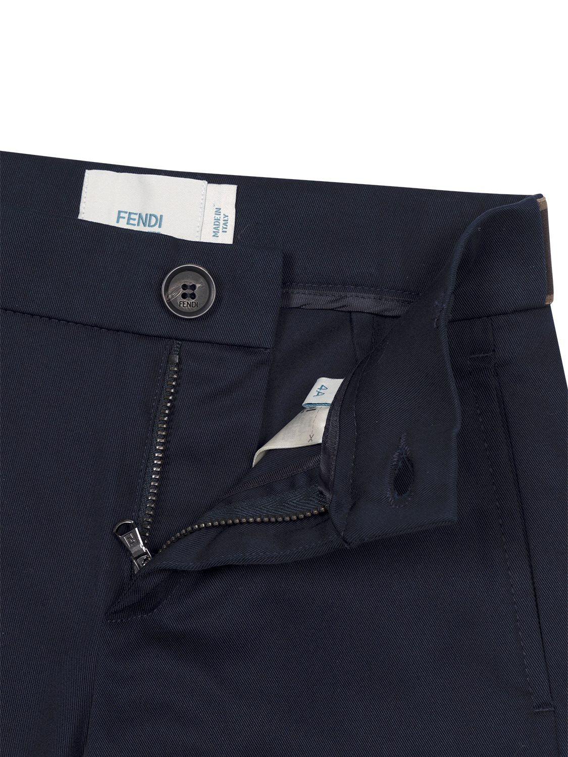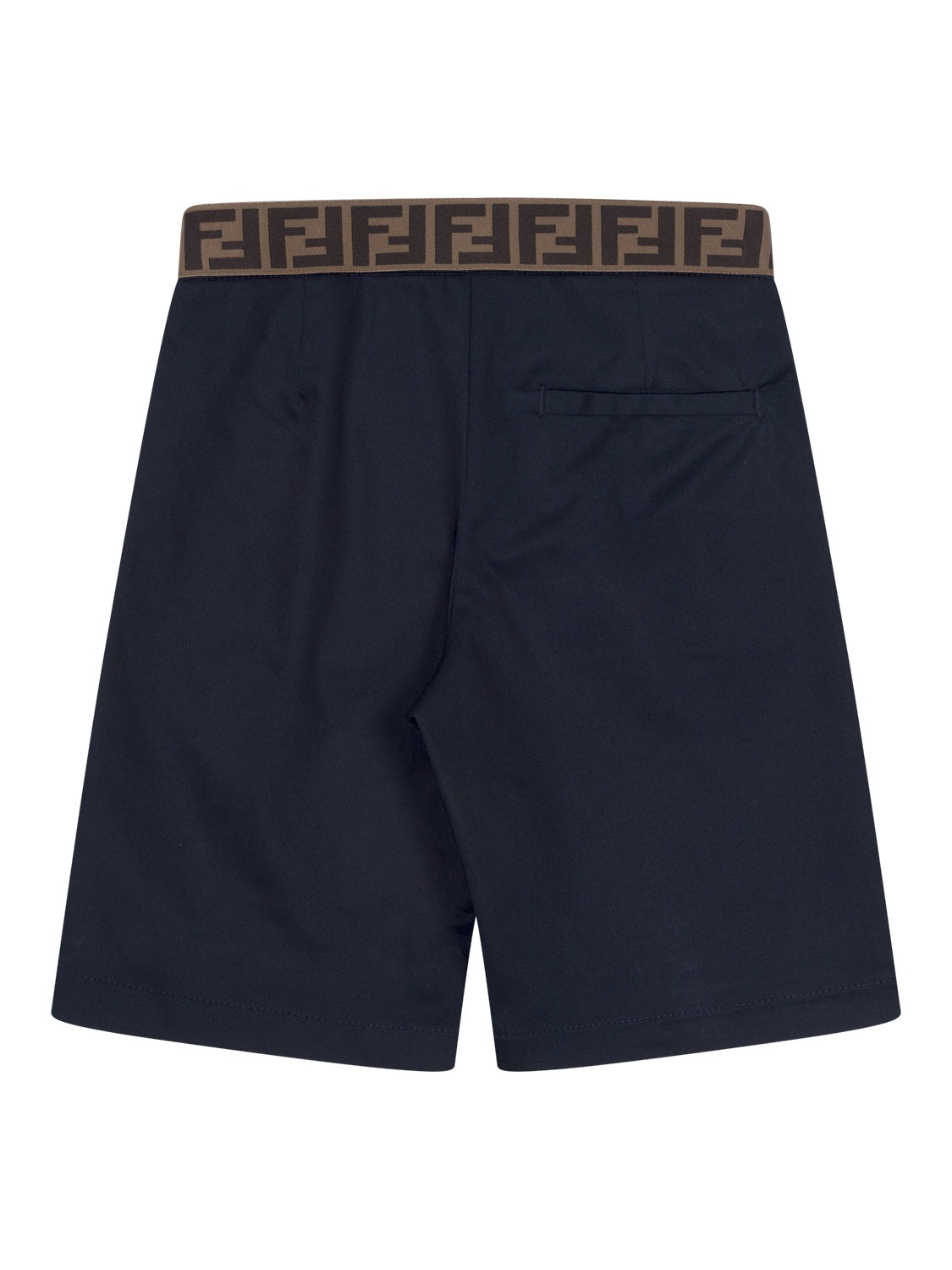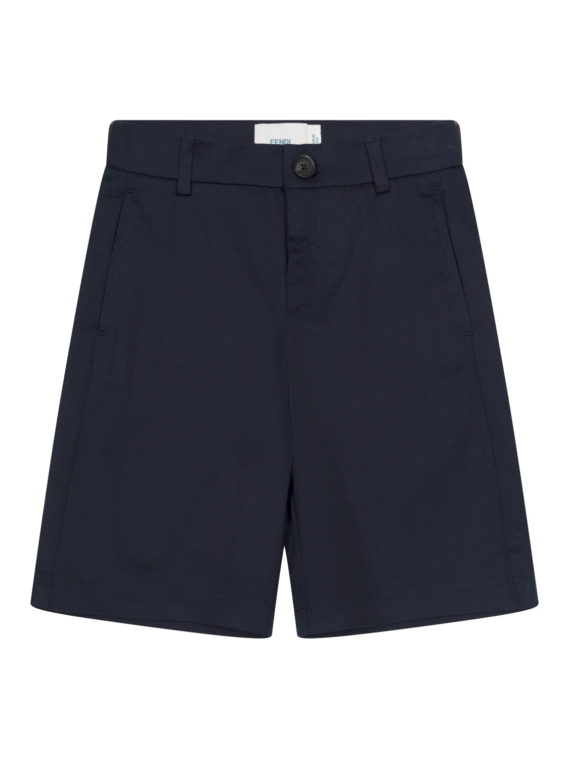 Diese elegante Baumwollshorts in Marineblau von Fendi Kids verkörpert die Essenz kindlicher Eleganz, gepaart mit höchstem Komfort für Alltag und Freizeit. Der gerade, klassische Schnitt sowie der bequeme Bund mit einem elastischen Einsatz sorgen dafür, dass dieses Modell sich perfekt an die Bedürfnisse Ihres Kindes anpasst und außergewöhnliche Bewegungsfreiheit bietet.