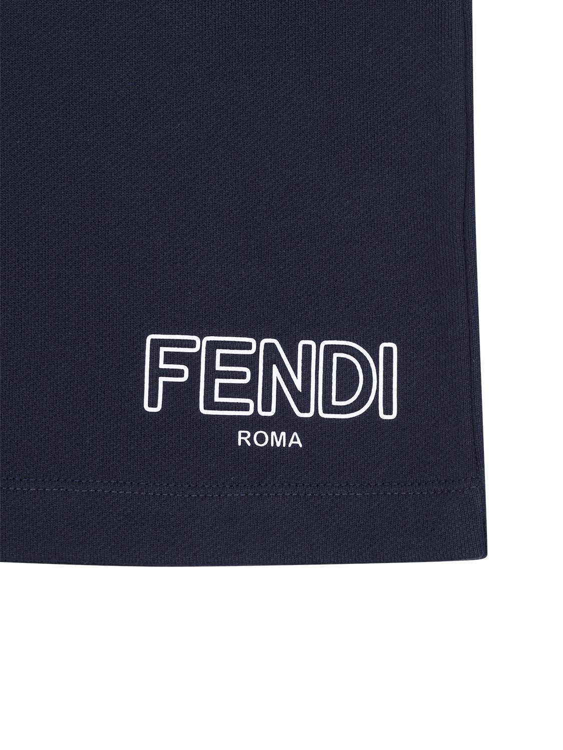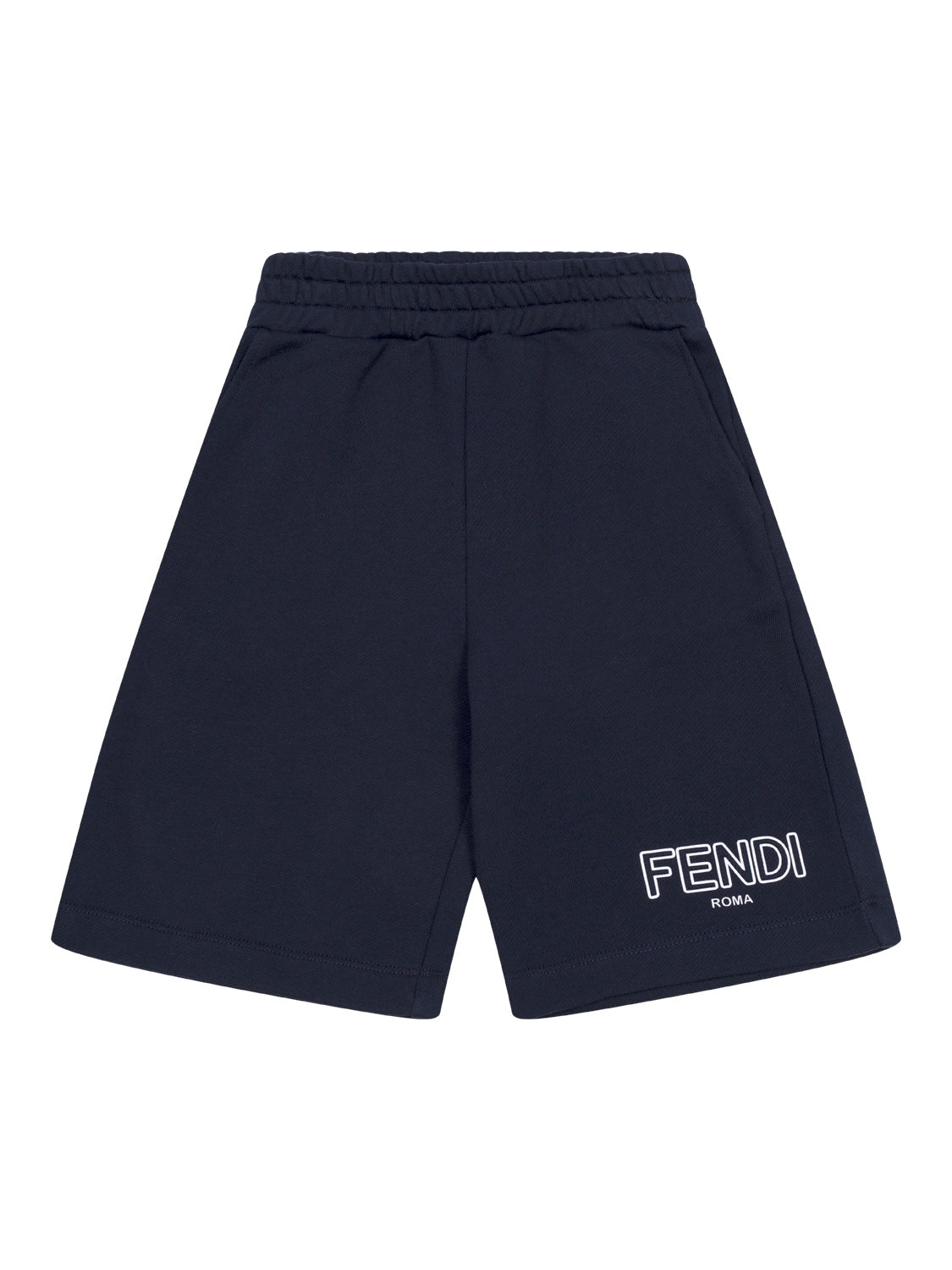 Diese edle Sweatshorts in Marineblau von Fendi Kids besticht mit einem schlichten Design aus reiner Baumwolle und bietet ein traumhaftes Tragegefühl. Am Saum auf der Vorderseite setzt ein Print des ikonischen Fendi-Schriftzuges labeltypische Akzente, während ein elastischer Bund zusätzlichen Komfort verspricht und seitliche Eingriffstaschen das lässige Design gekonnt vollenden.