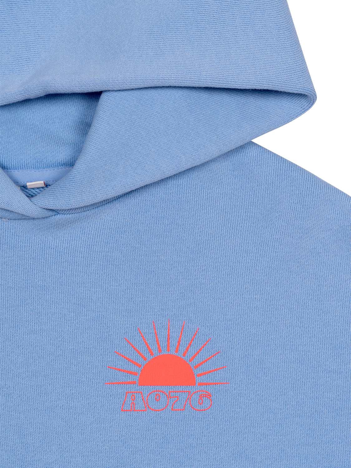 Der Demi Hoodie in Hellblau von AO76 ist ein bequemer Klassiker und sorgt für echtes Beach-Feeling. Er überzeugt mit einem sportiven Design sowie der raffiniert interpretierten Grafik 'Vita min sea' in Neonorange der Rückseite.