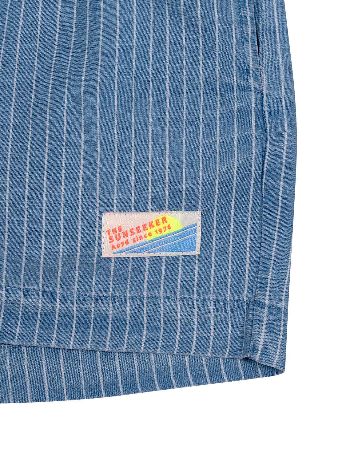 Die Eve Shorts von AO76 präsentieren sich im blauen Streifen-Design und bieten dank des weiten Beins ein angenehmes Tragegefühl. Einfach ideal für warme Tage, Dank der wunderbar leichten und weichen Materialmischung aus Lyocell, Baumwolle und Leinen.