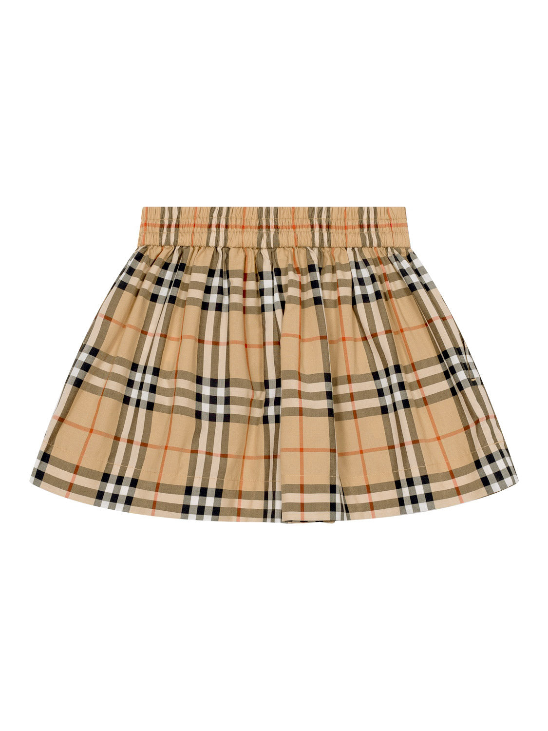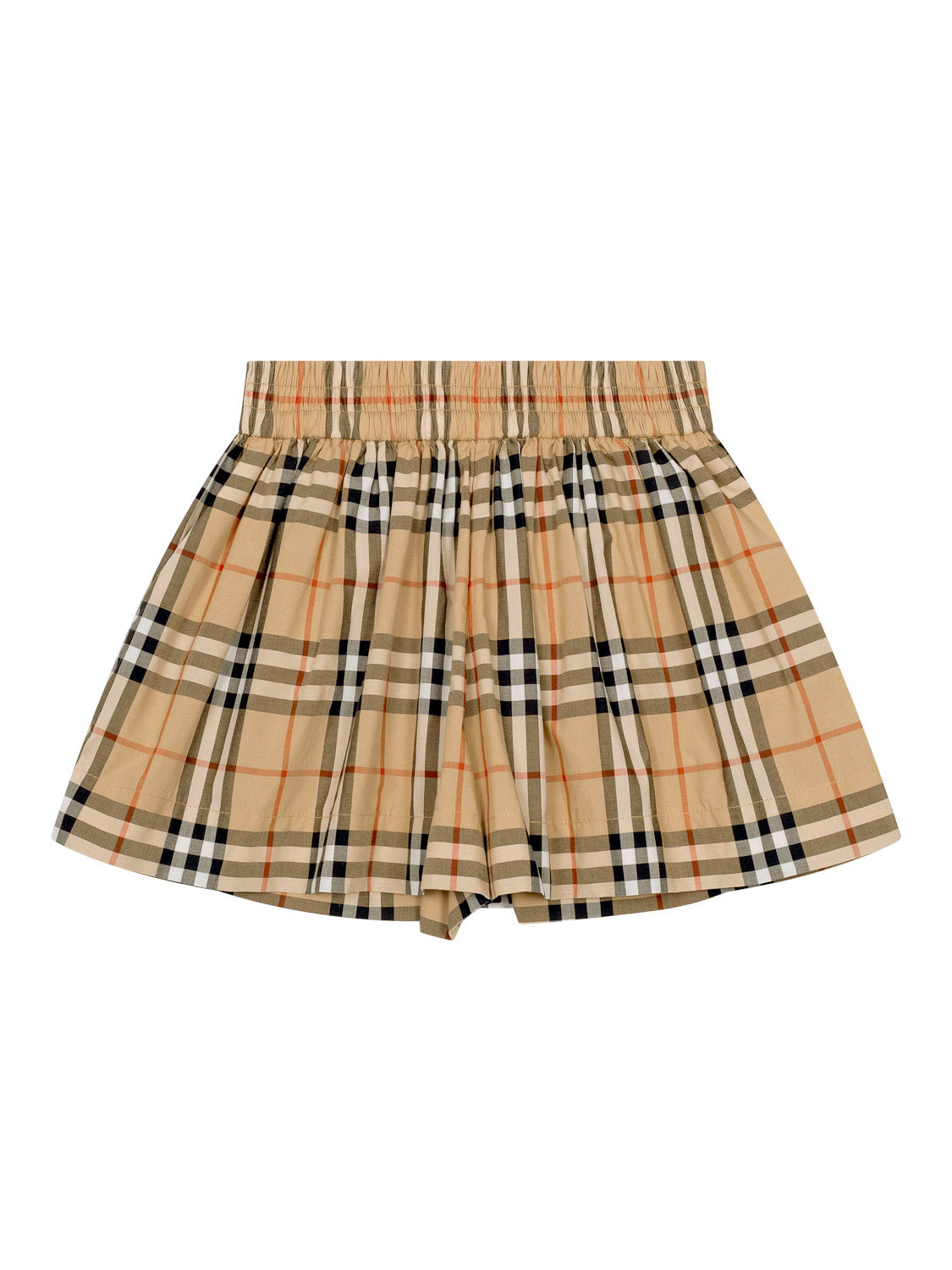 Dieser edle Hosenrock von Burberry Kids ist die perfekte Ergänzung für die Mädchen-Garderobe. Das Design ist mit dem ikonischen Burberry Check-Karomuster in Signature Sand-Beige versehen und verfügt über einen elastischen Komfort-Bund sowie ein ausgestelltes Bein.