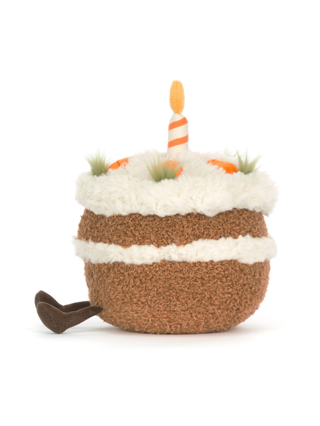 Der Amuseables Carrot Cake von Jellycat zaubert mit seinem charmanten Lächeln jedem ein Strahlen ins Gesicht, während das extra flauschige Plüschmaterial zum Kuscheln einlädt. Einen weichen Plüsch-Karottenkuchen braucht einfach jeder in seinem Zuhause. Mit der Kerze, dem unwiderstehlichen Karotten-Dekor und den weichen Cordstiefelchen wird diese cremige Torte zum Renner auf jeder Party.