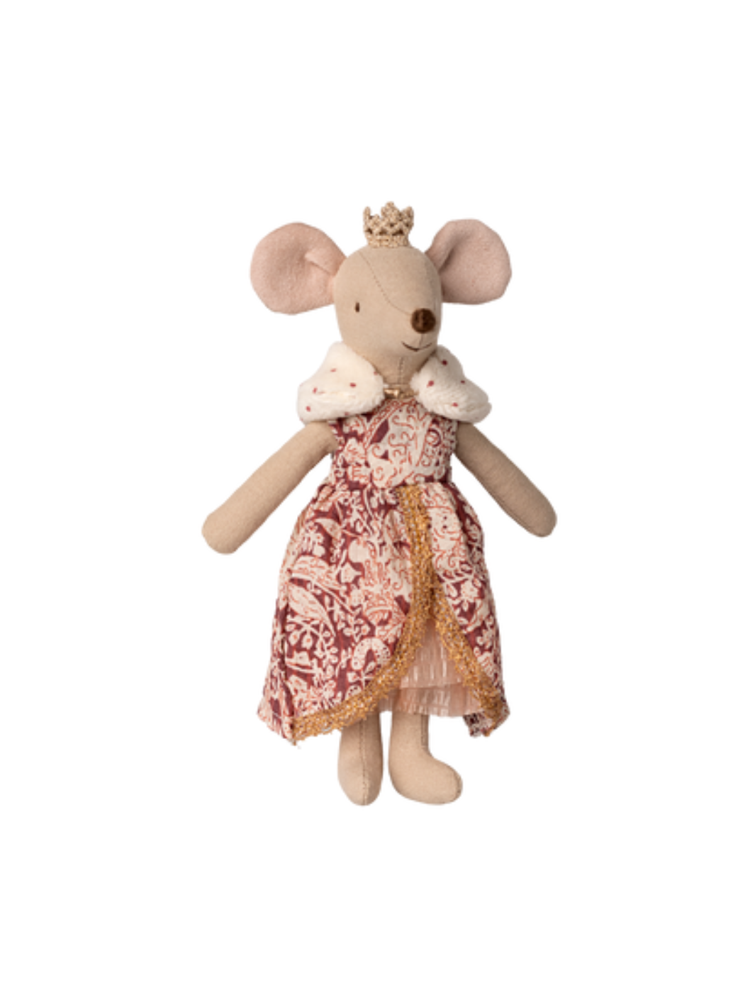 Die süße Königinnen-Maus in der Größe Mama-Maus von Maileg darf in keinem Maileg Schlosssaal fehlen. Die 16 cm große Maus trägt ein prächtiges, königliches Kleid mit einem Plüschpelzkragen und natürlich eine zauberhafte, goldene Krone auf dem Kopf.